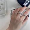 Anel de zircônia oval preta feminino geométrico irregular moda personalidade all-match s925 prata banhado a prata anel de dedo aberto na moda