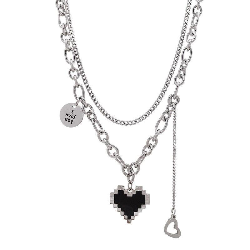 Novo Titânio Aço Dupla Camada Mosaico Amor Forma Colar Feminino Hip Hop Nicho Design Simples Carta Pingente Clavícula Corrente
