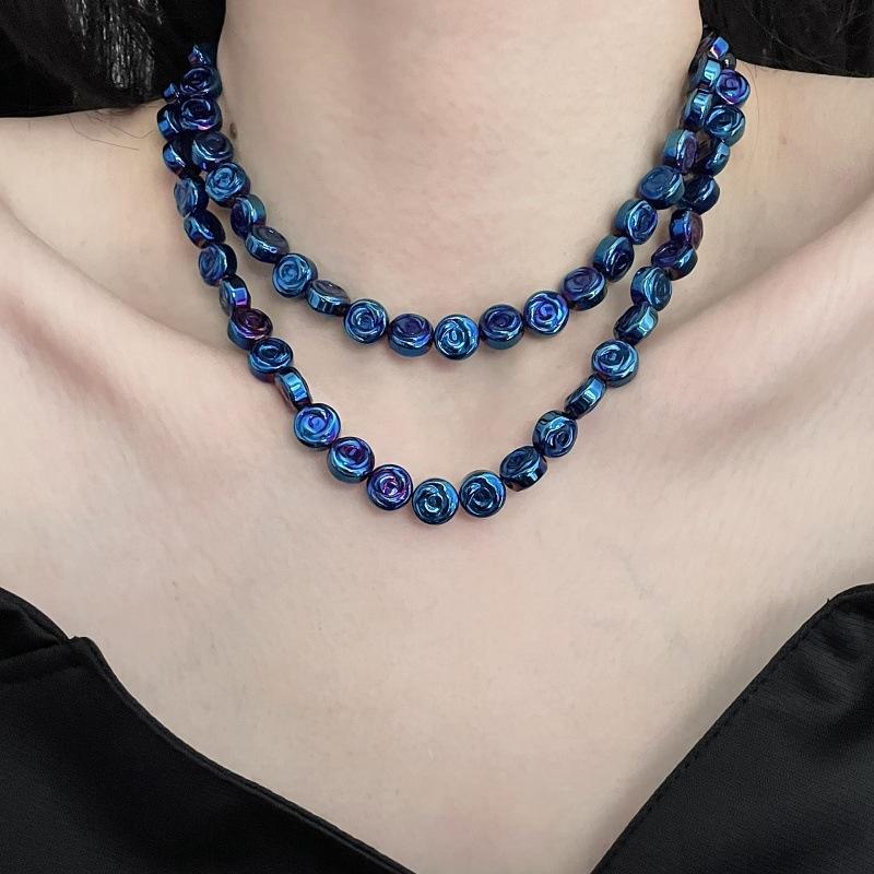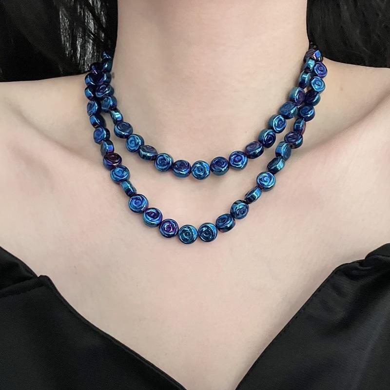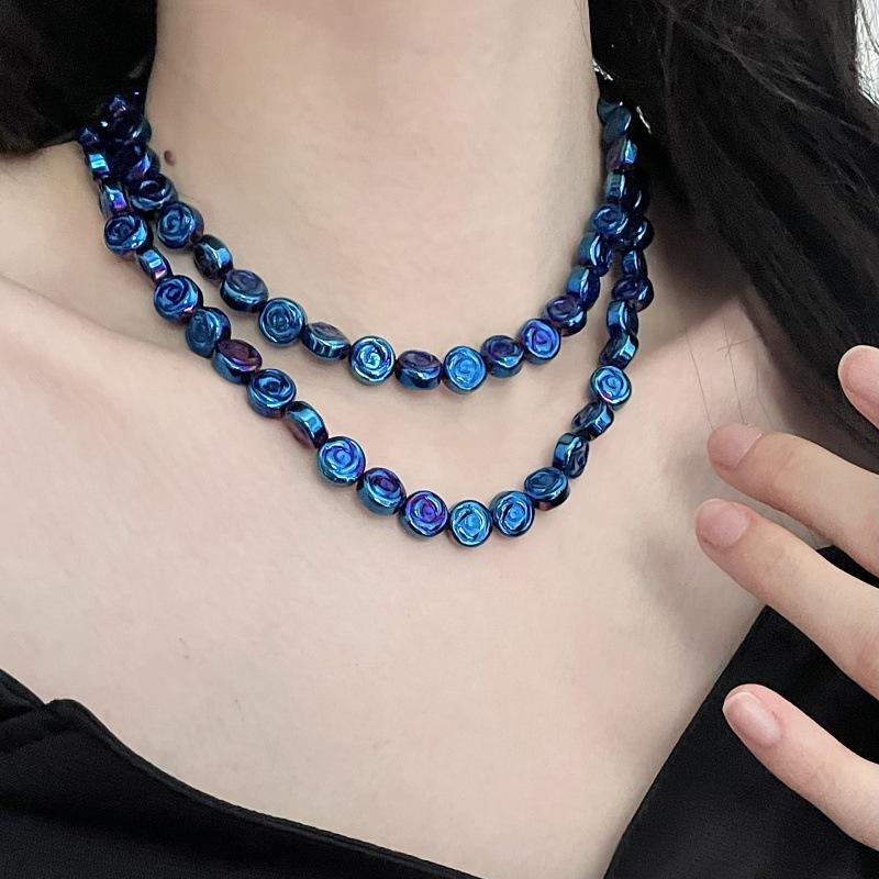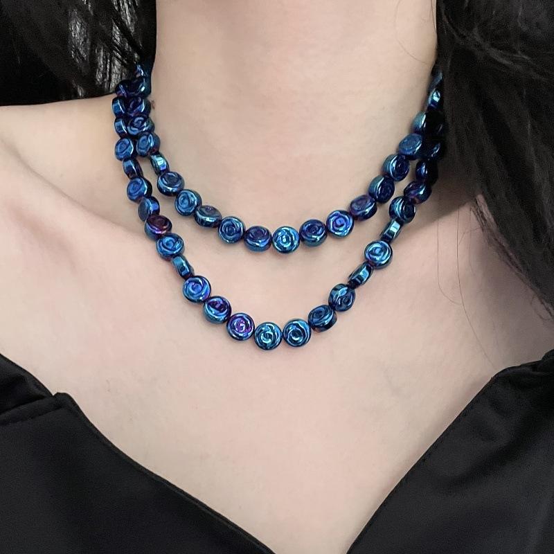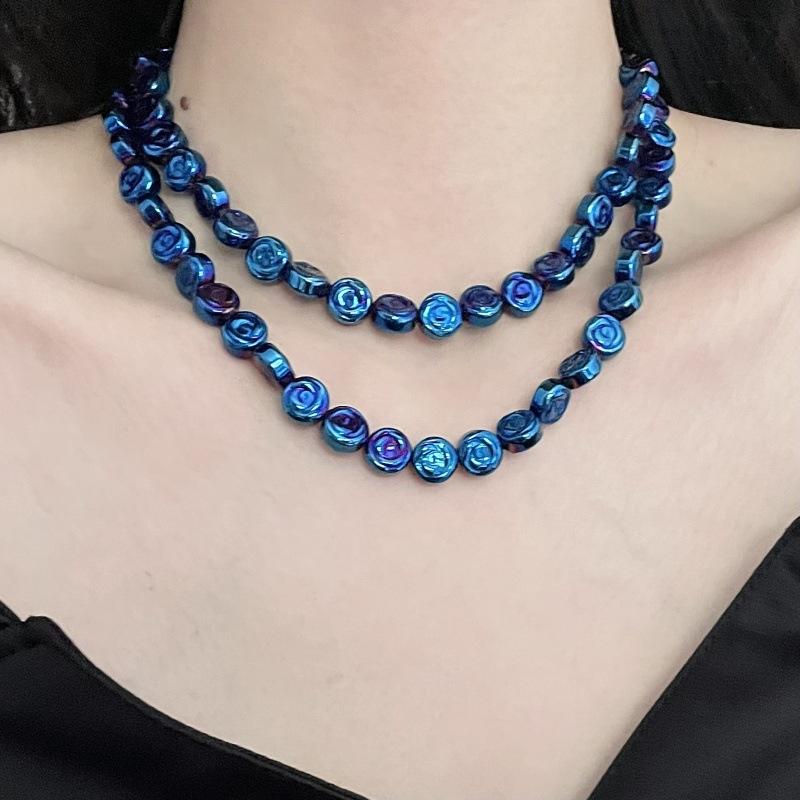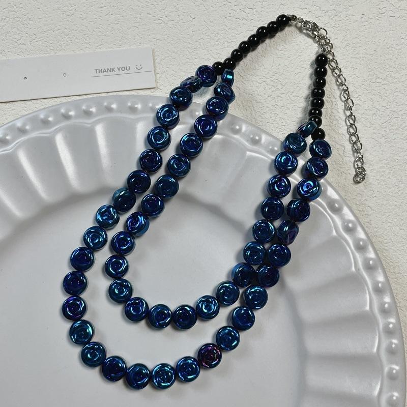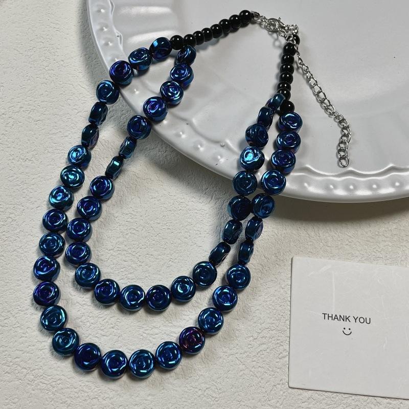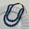 Colar frisado azul de camada dupla simples Nova Moda Niche Colar Moda Design elegante Cadeia de clavícula de alta qualidade