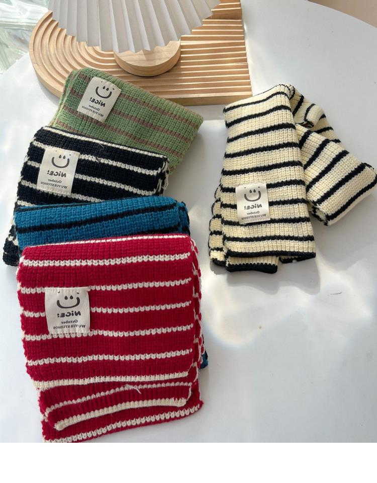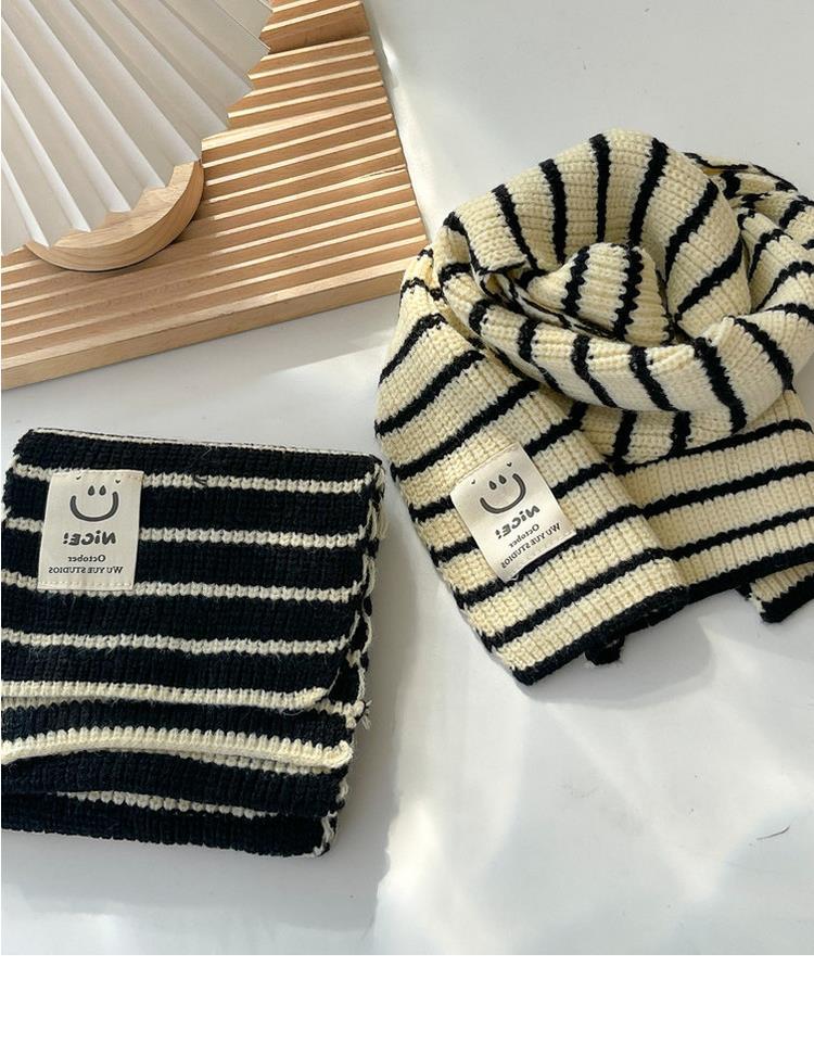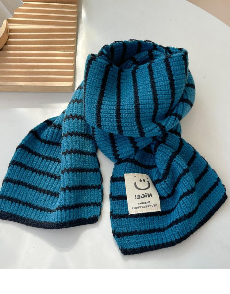 Cachecol infantil listrado clássico da Coreia do Sul Smiley Pic engrossado estilo ocidental quente para todos os jogos Cachecol de inverno para bebês meninos e meninas