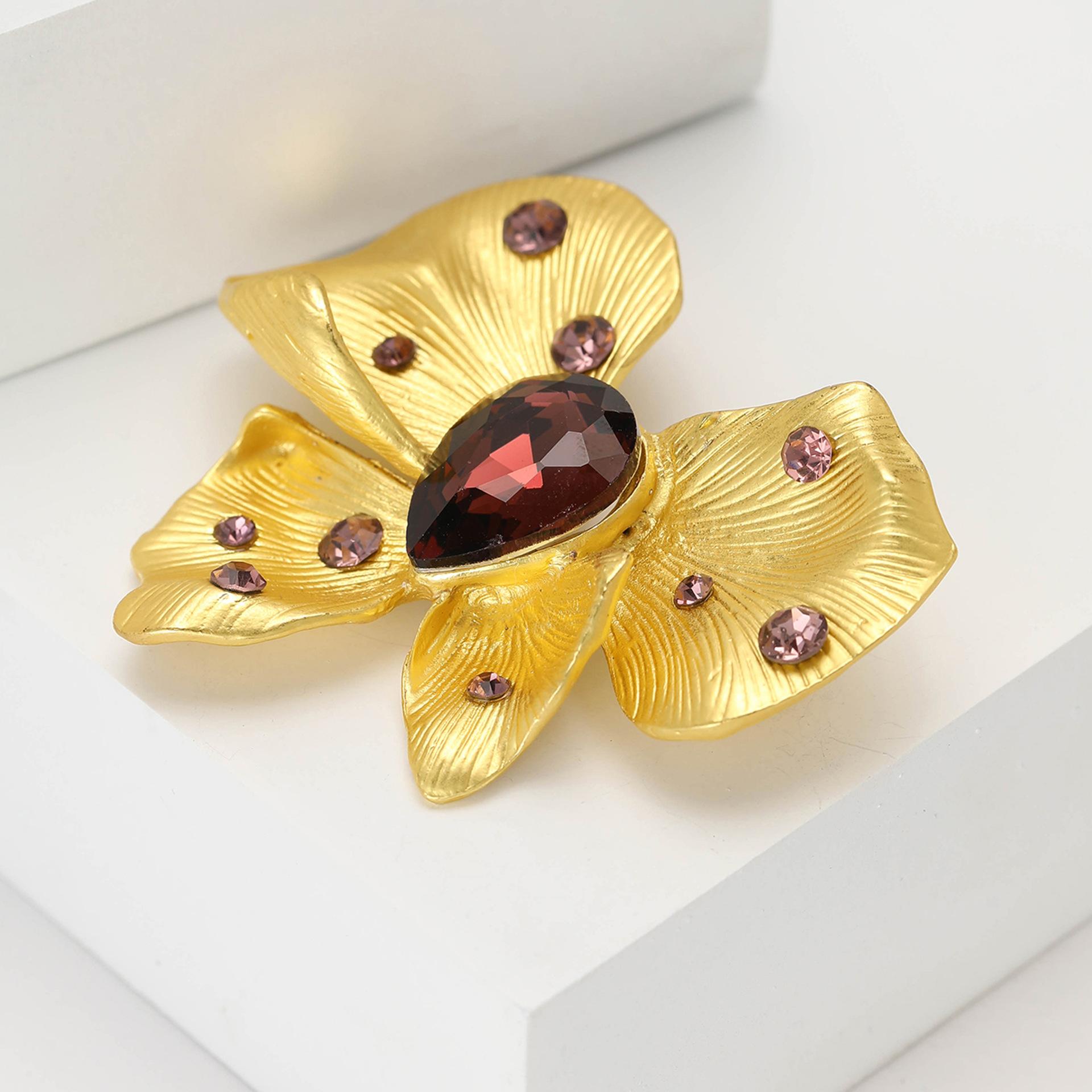 Novo Requintado High-end Strass Dumb Ouro Borboleta Broche Vintage All-match Mulheres Terno Casaco Corpete Jóias Pin