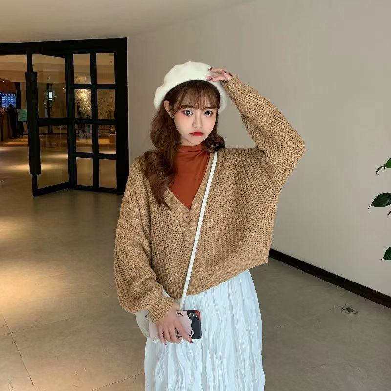 2023 Estilo Suave Estilo Japonês Soft Girl Design Um Botão Cardigan Suéter de Malha Jaqueta Feminina Coreana All-match Internet Jaqueta Vermelha