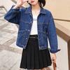 Real shot lapela azul escuro Camisa jeans casaco camisa feminina 2024 Primavera e Outono novo desgaste exterior top solto 2024