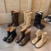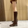 [Comprimento da perna skinny] ~ Botas de salto alto marrom de cabeça quadrada pequena para mulheres novas outono/inverno 2023