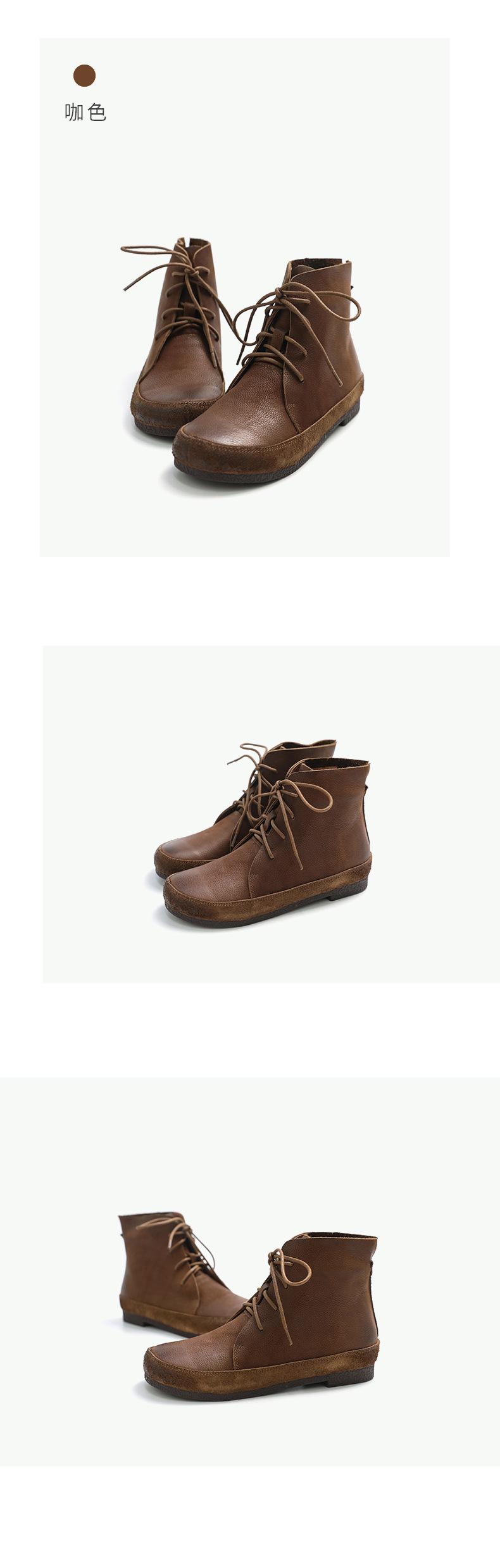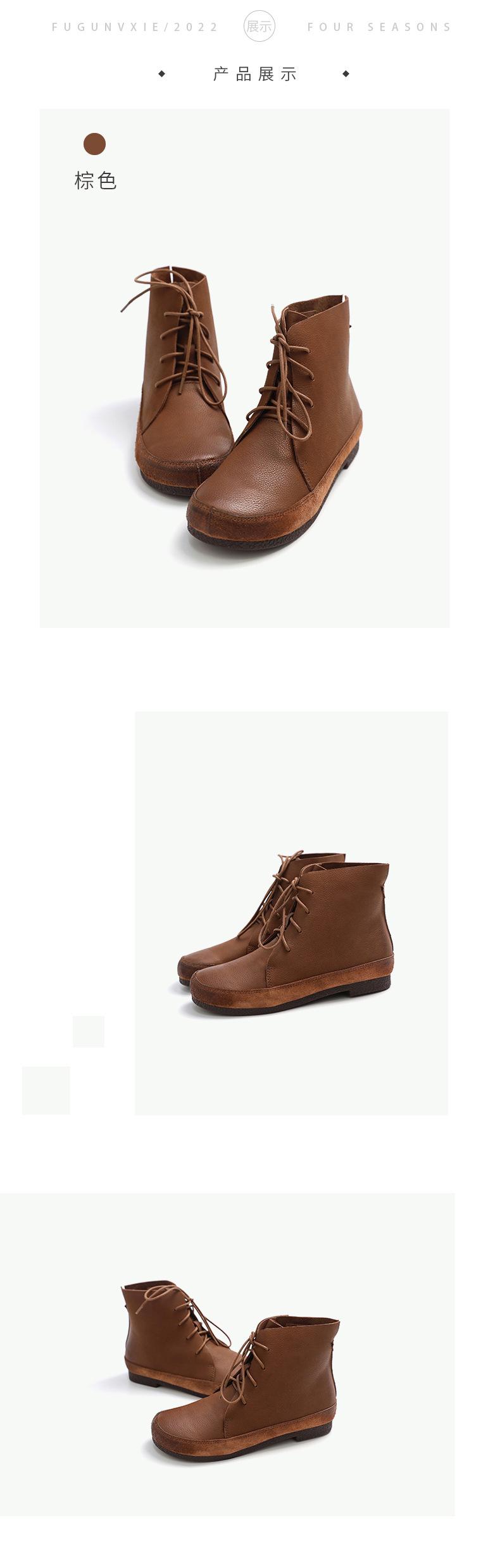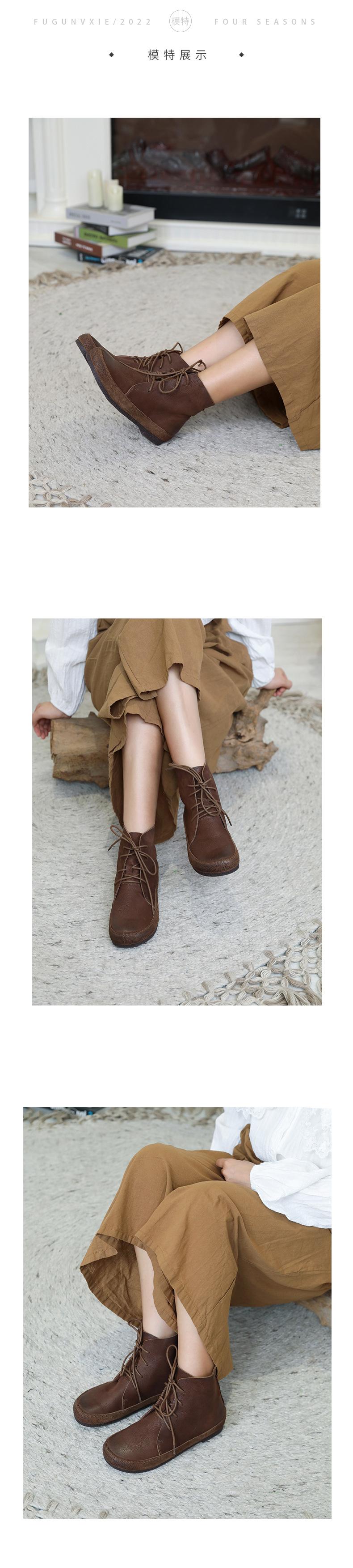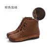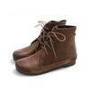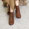 Corte de couro couro couro cabeça redonda costura lace-up salto baixo vintage sapatos femininos casual botas curtas botas femininas