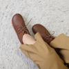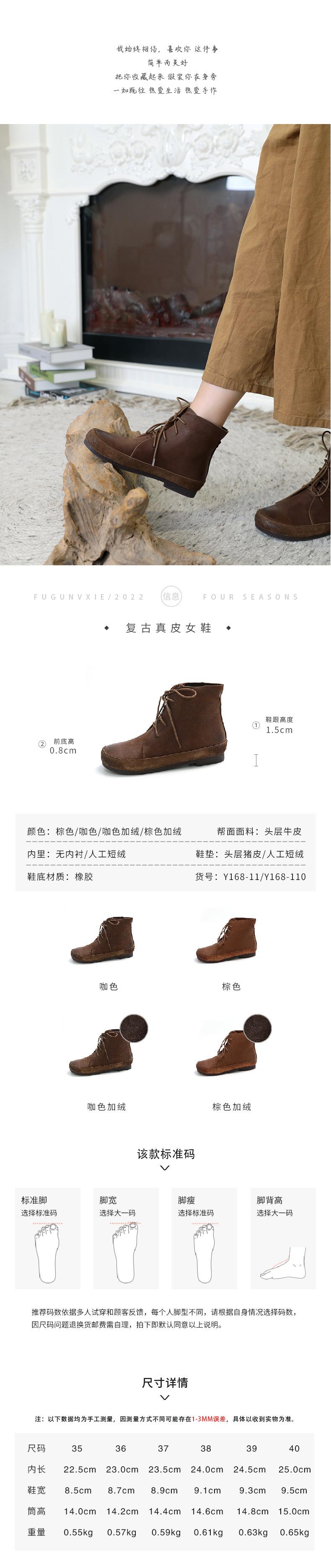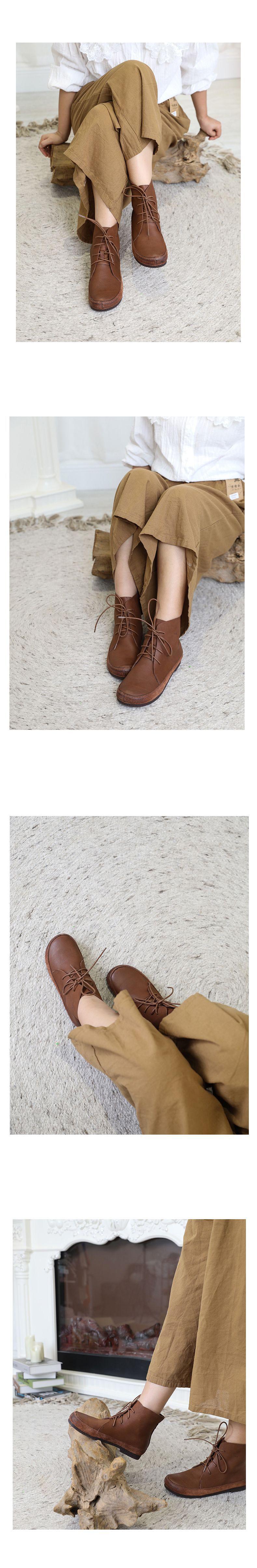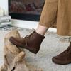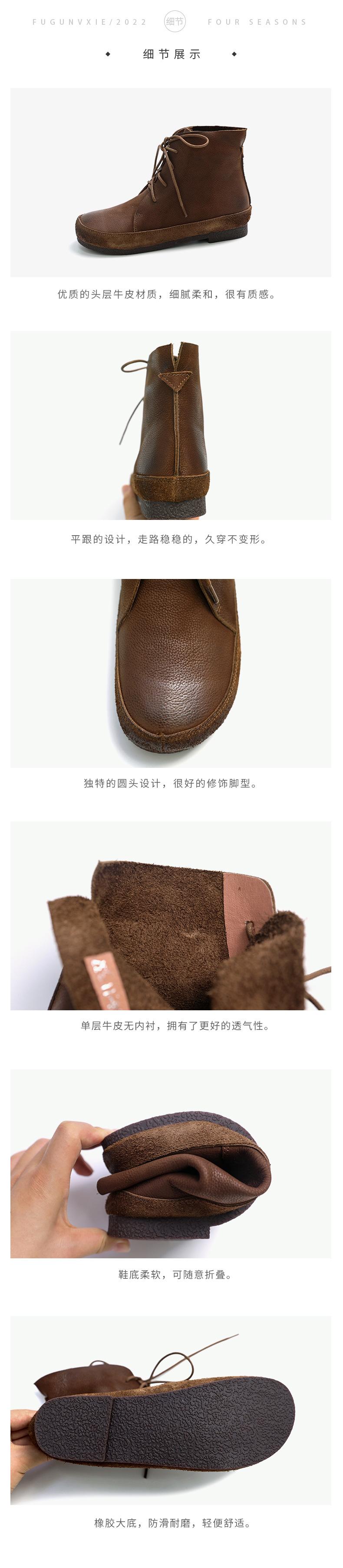 Corte de couro couro couro cabeça redonda costura lace-up salto baixo vintage sapatos femininos casual botas curtas botas femininas