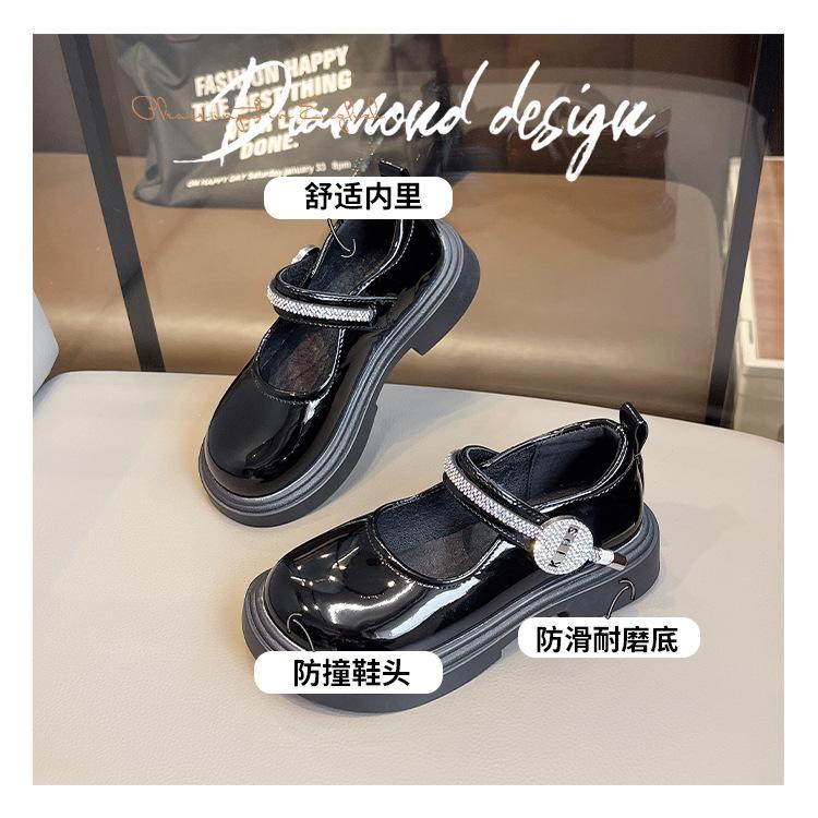 Sapatos de Couro para Meninas Sapatos de Princesa 2025 Novo Primavera Sapatos Infantis Preto Estilo Pequeno Fragrância Sapatos Solteiros Sola Macia para Crianças Médias e Grandes Meninas