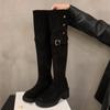 Versão coreana de botas de cavaleiro com zíper de salto grosso e fundo grosso 2024 outono novo Joker, mas botas de cavaleiro na altura do joelho femininas atacado