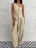 2024 Europeu e americano cross-border verão novo algodão e linho terno feminino moda cor sólida solto calças casuais conjunto de duas peças