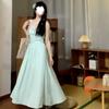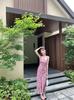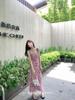 Vestido de Suspensório Floral Rosa para Férias na Praia para Mulheres 2025 Verão Novo Ajuste Slim Sem Mangas Cintura Alta Saia Longa