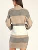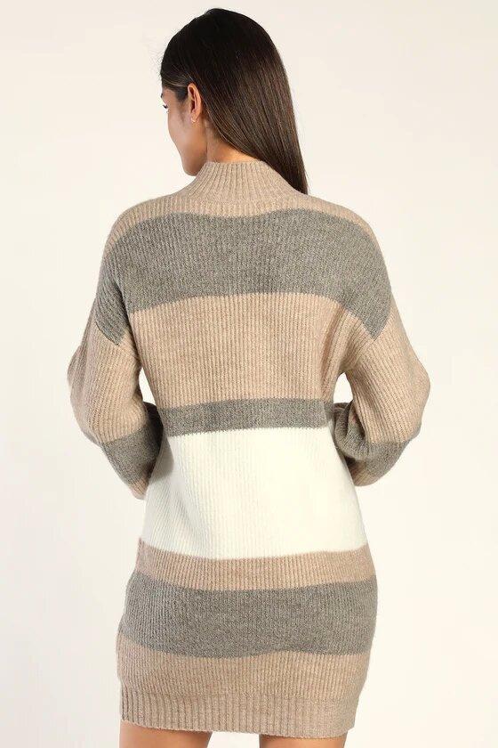 Suéteres Europeus e Americanos de Outono e Inverno Suéteres Femininos Amazon Transfronteiriço Listrado Contrastante Gola Redonda Pulôver Vestido de Manga Comprida