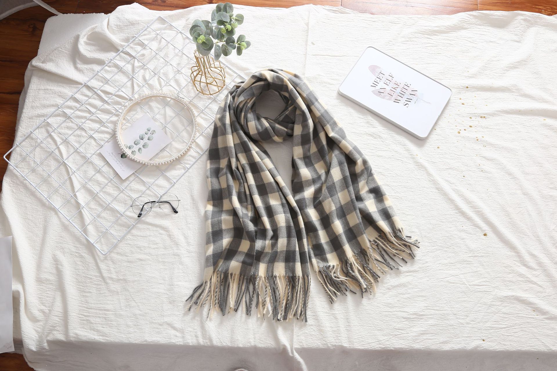 Light Gray + milk white plaid