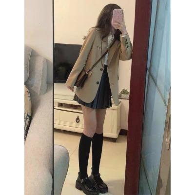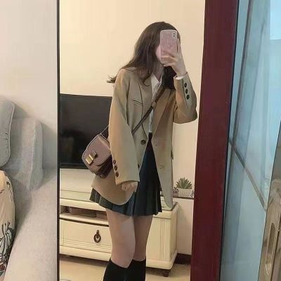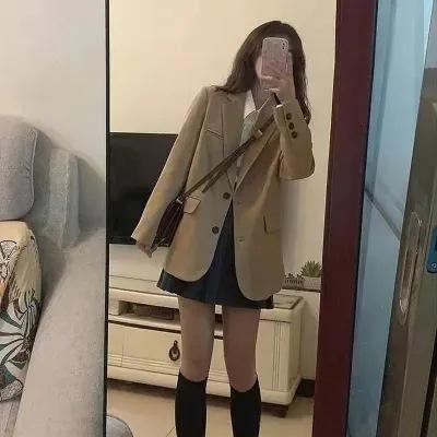 Estilo K de Estilo Preppy Casaco de Terno Pequeno Marrom para Mulheres Primavera & Outono 2025 Look Solto Emagrecedor Terno Pequeno Casual Britânico