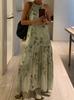 Novo vestido de pescoço estilo chinês feminino verão 2024 Novo vestido longo sem mangas elegante estampado de alta qualidade transfronteiriço