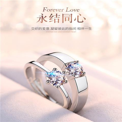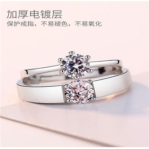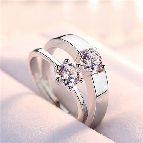 Shake Tone Quick Hand Wedding Imitação Moissanite Anel de Diamante Anel de Seis garras Anel de Casal de Abertura Feminina Zircon 1 quilate Anel de Prata