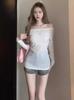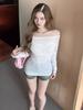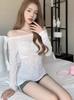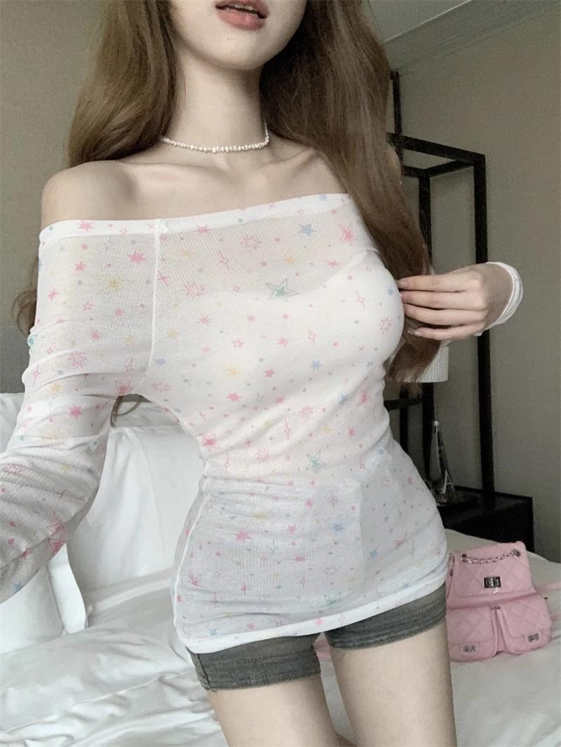 Estilo Americano Hot Girl Shoulder Blusa de manga comprida T-shirt protetor solar Mulheres início da primavera nicho Slim-fit emagrecimento Casual Top Ins Trendy