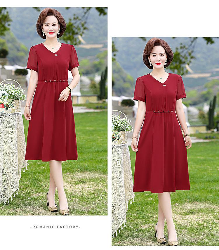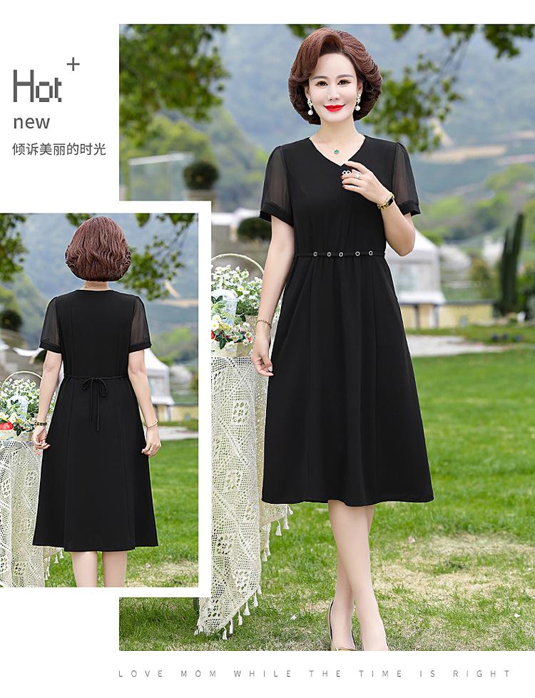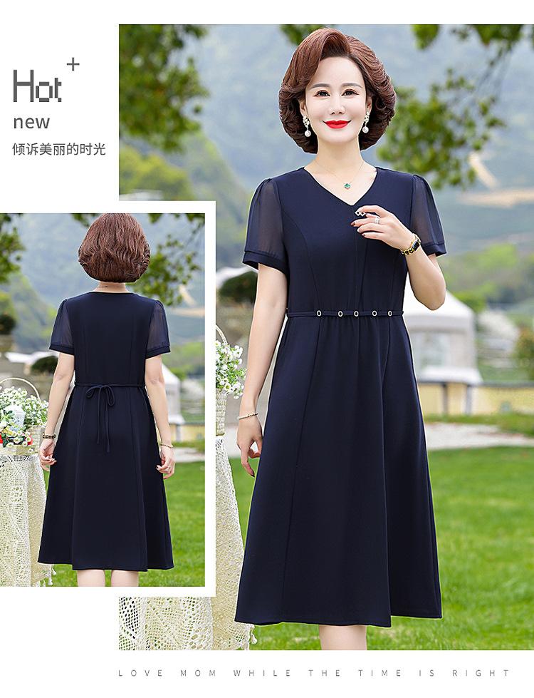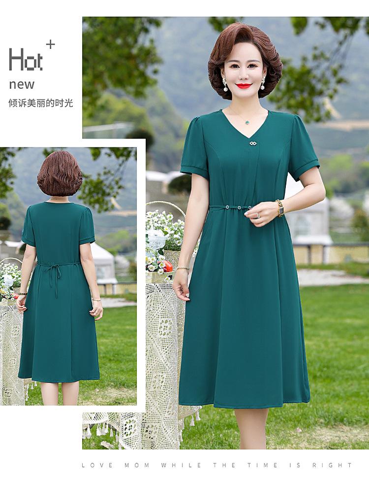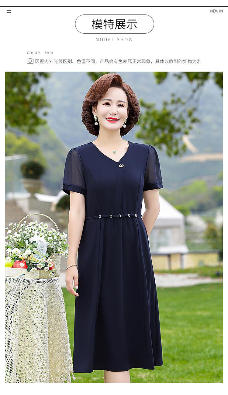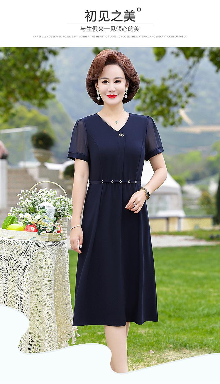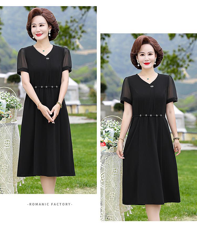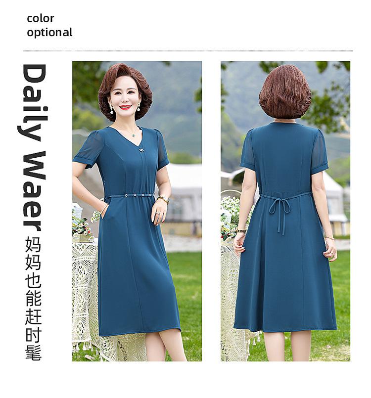 Moda mãe Verão novo estilo vestido de manga curta de meia-idade e idoso verão nobre temperamento saia de chiffon