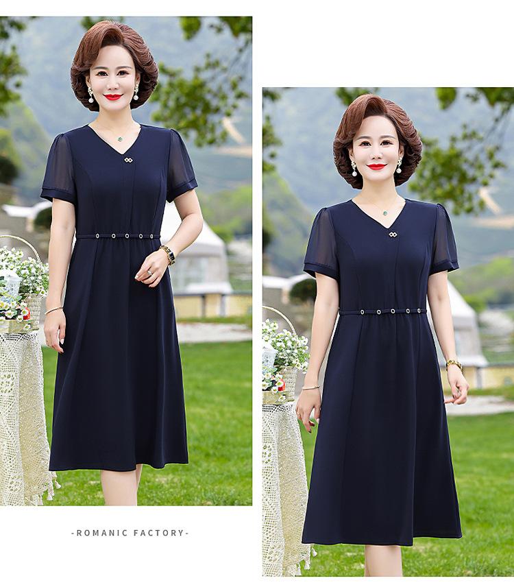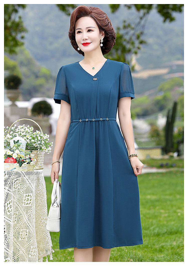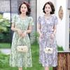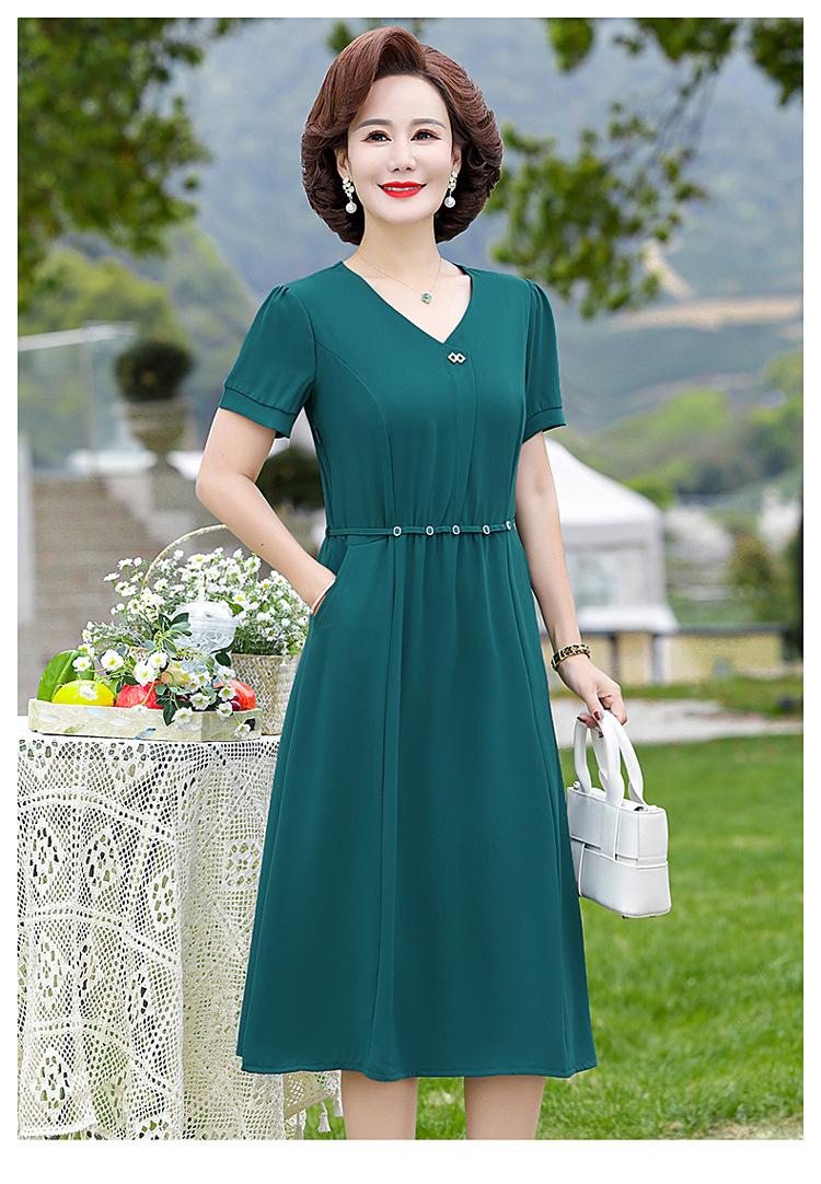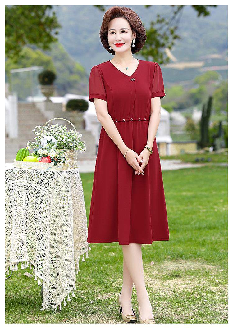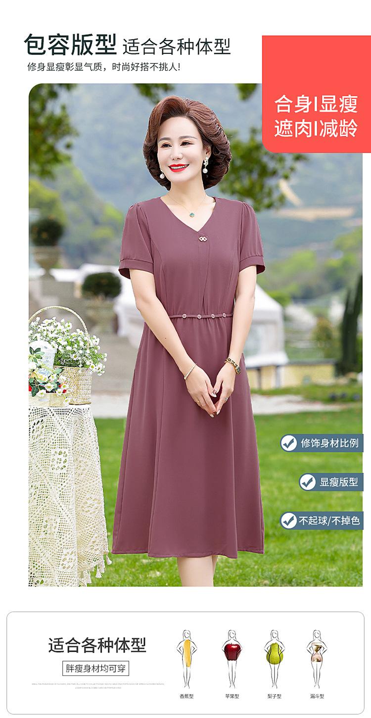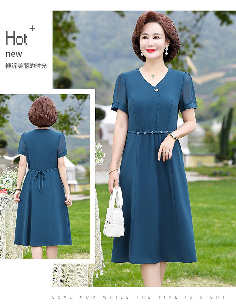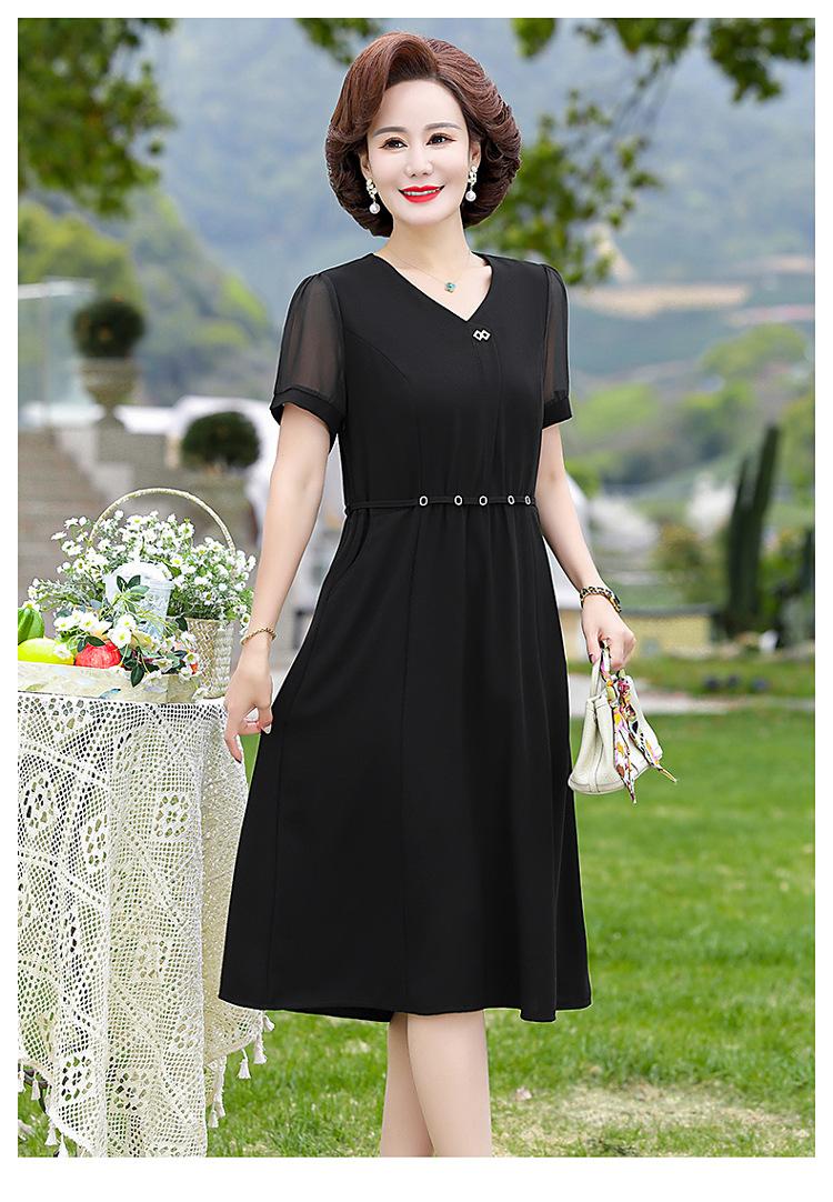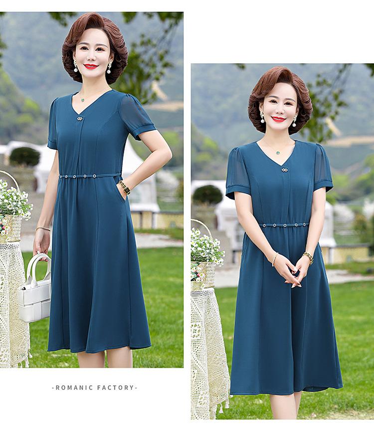 Moda mãe Verão novo estilo vestido de manga curta de meia-idade e idoso verão nobre temperamento saia de chiffon