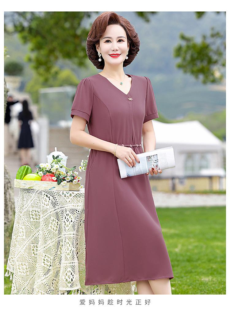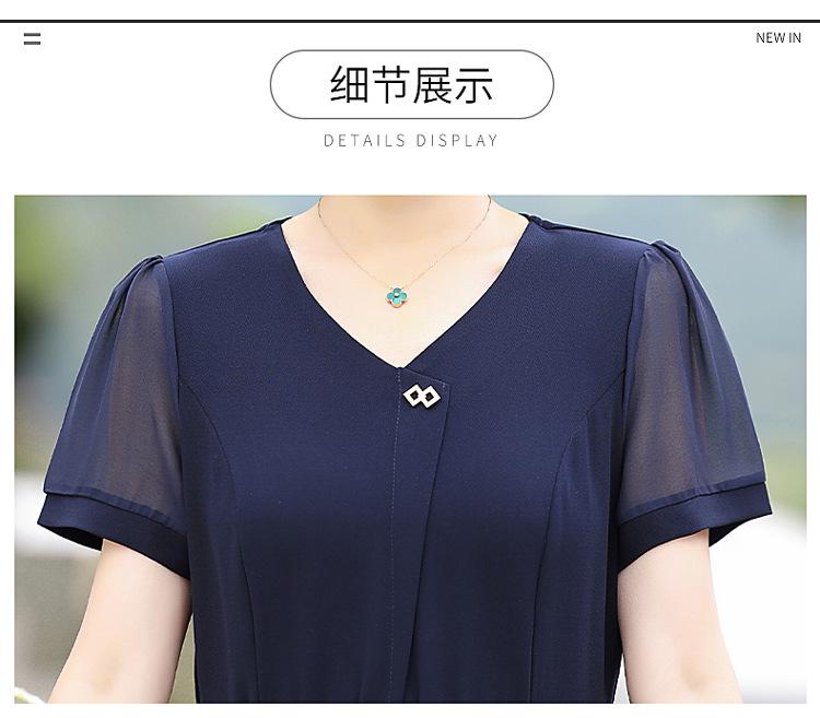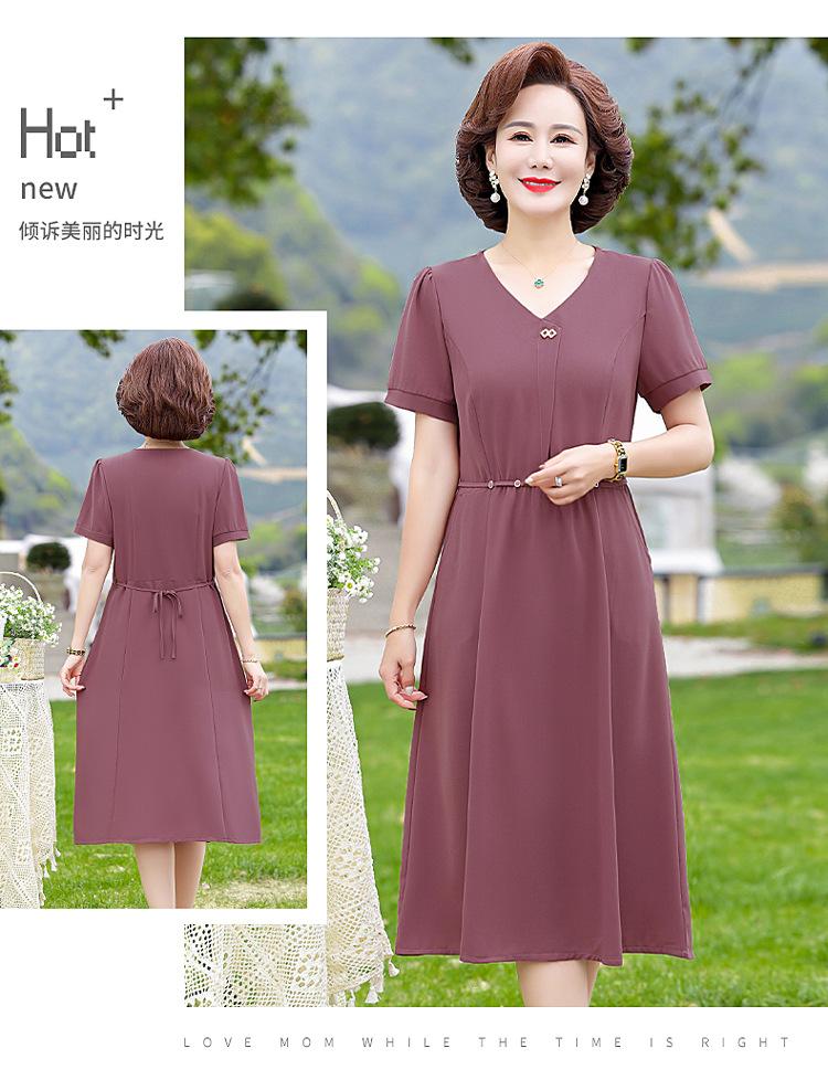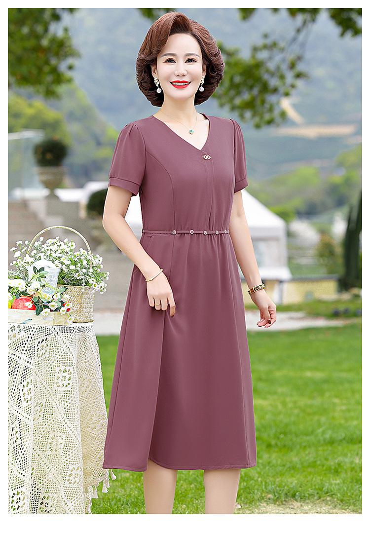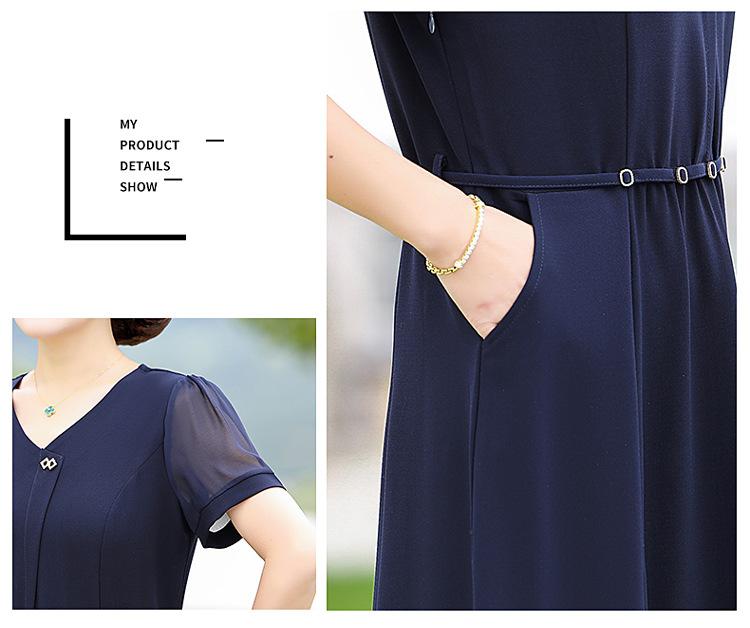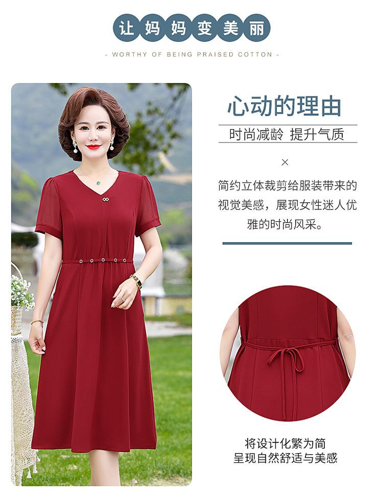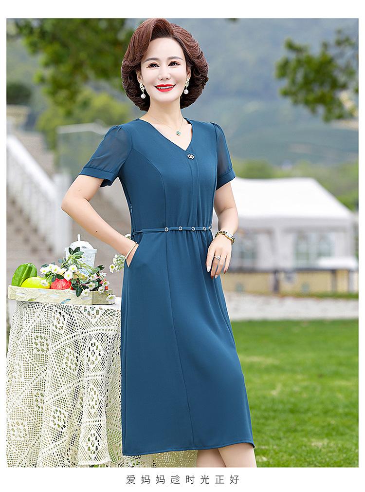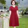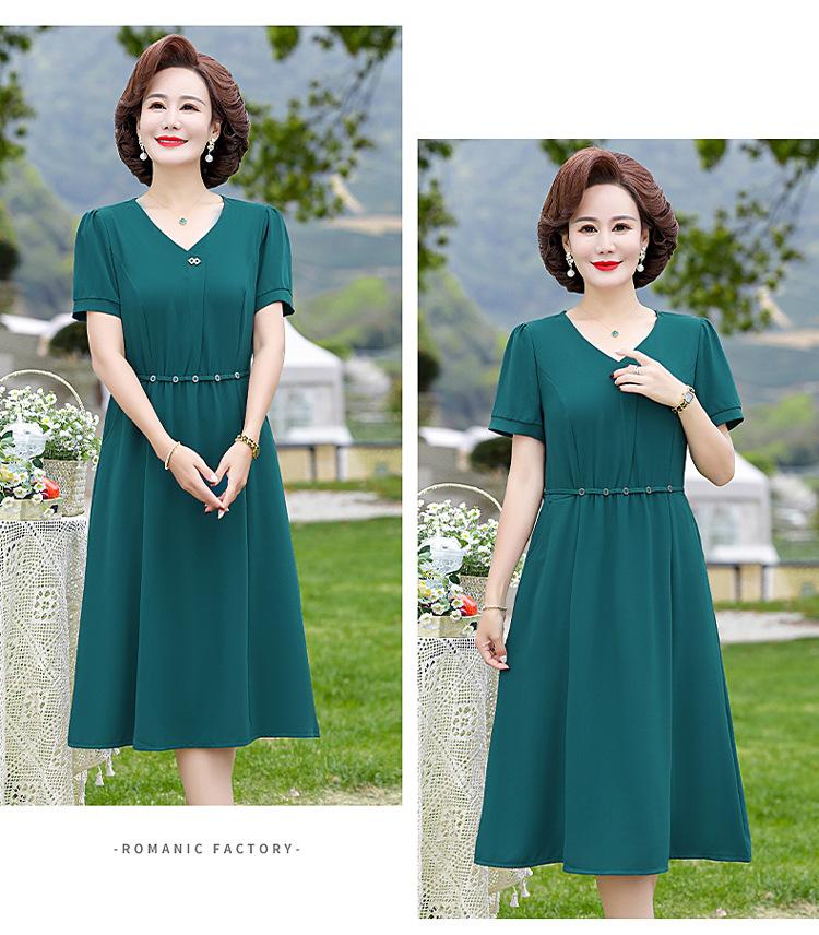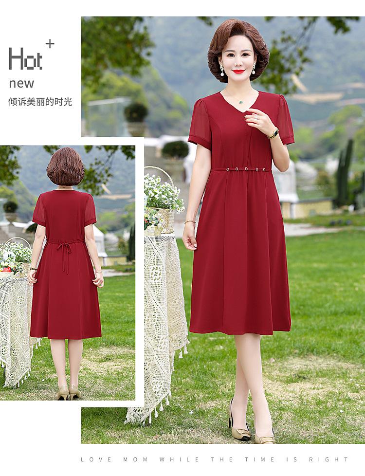 Moda mãe Verão novo estilo vestido de manga curta de meia-idade e idoso verão nobre temperamento saia de chiffon