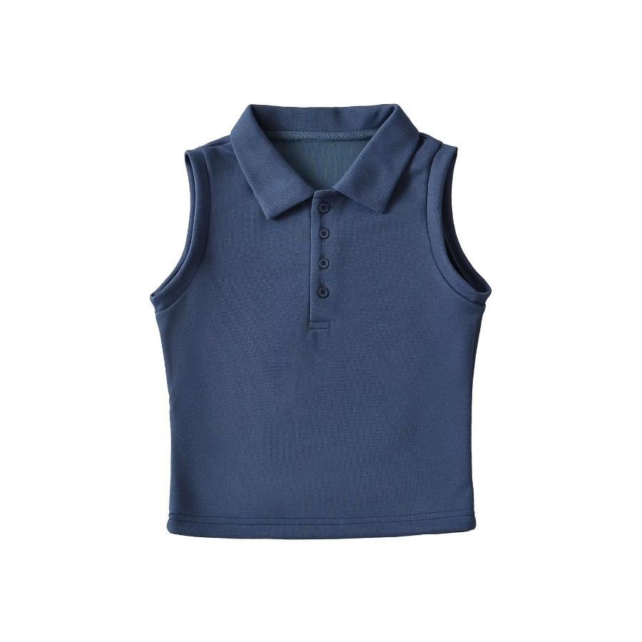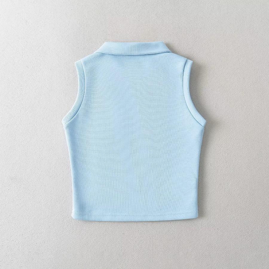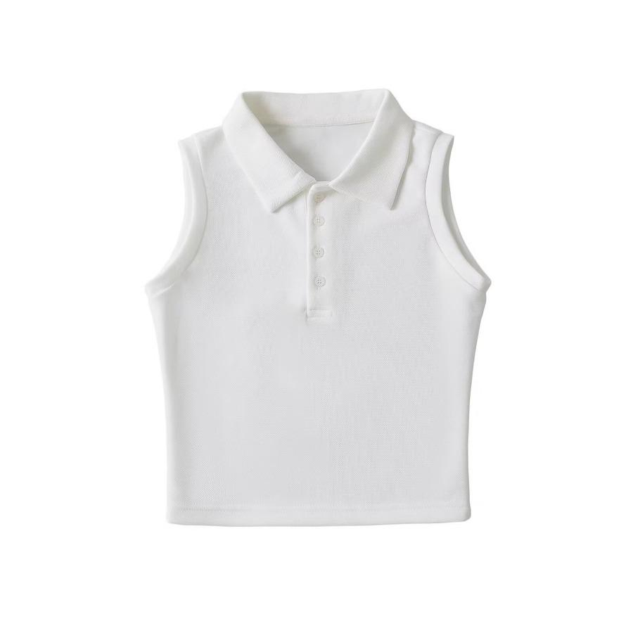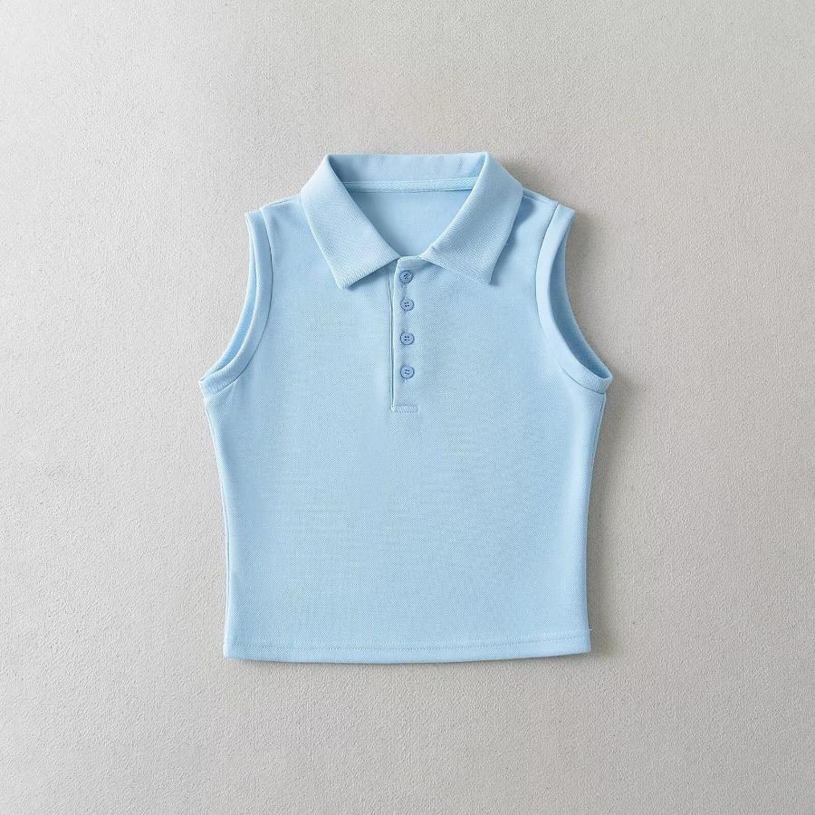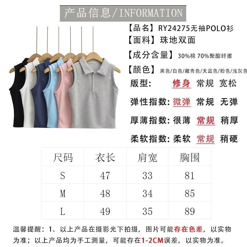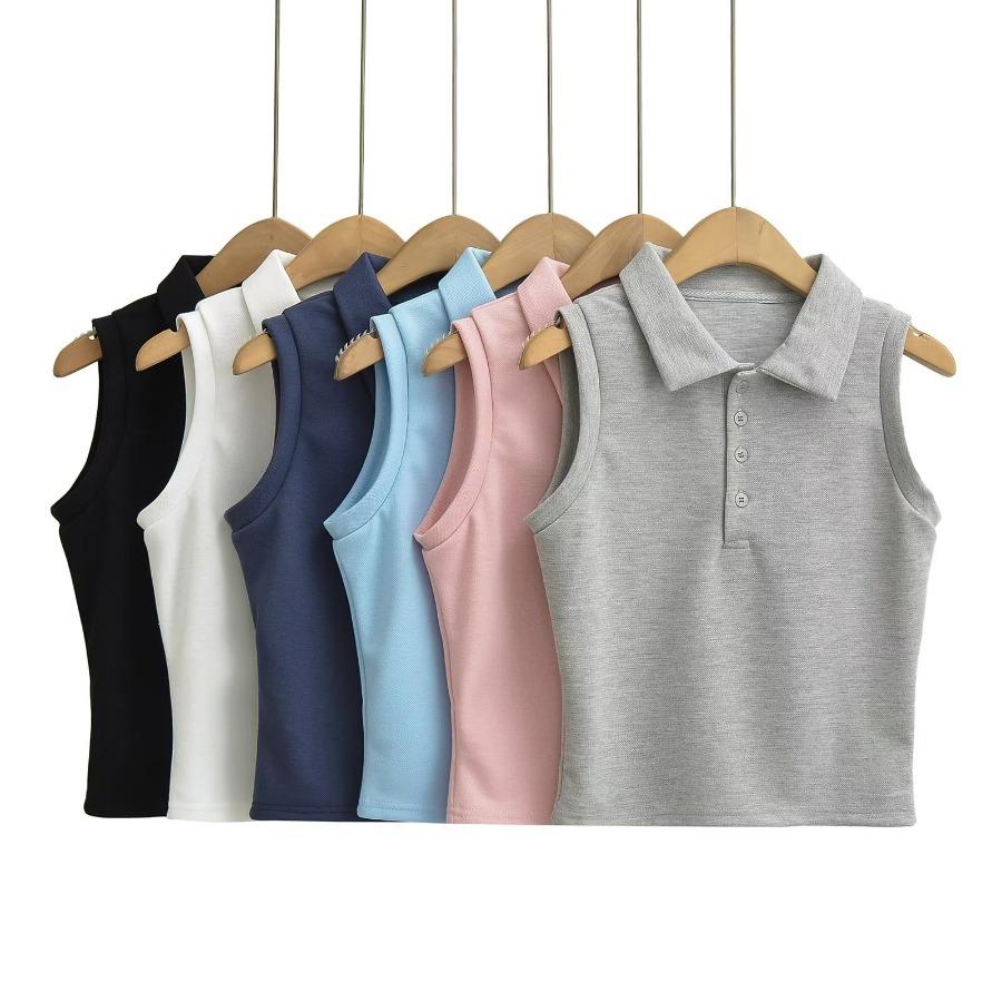 2024 Verão Europeu e Americano Novo Camisa Polo Slim-fit Sem Mangas Top de Colete Curto
