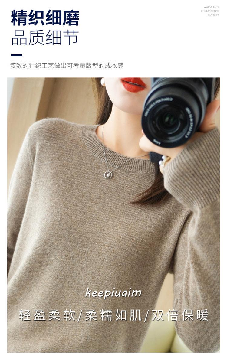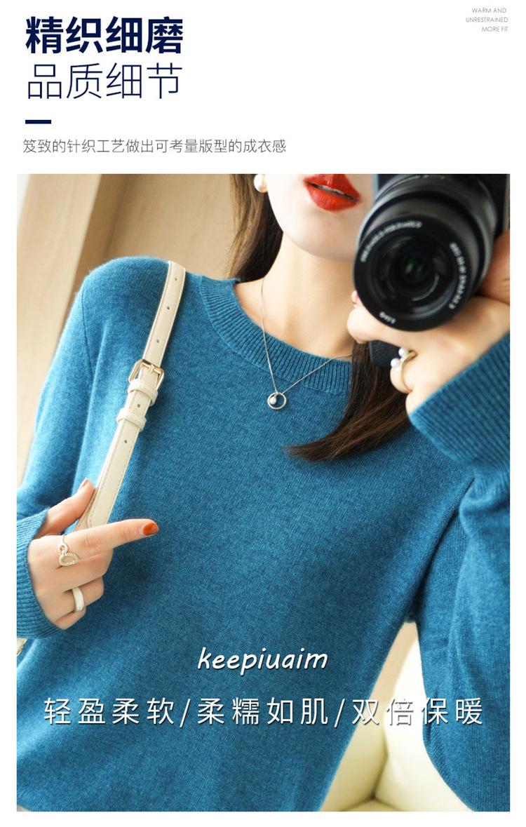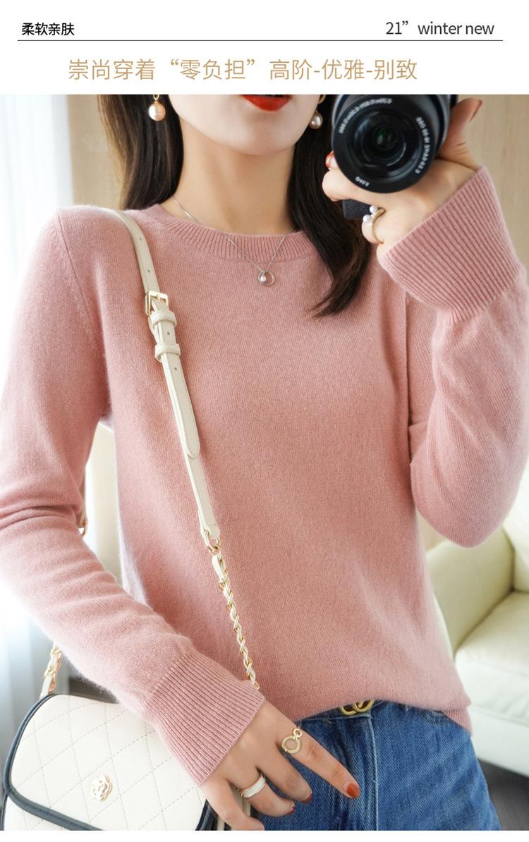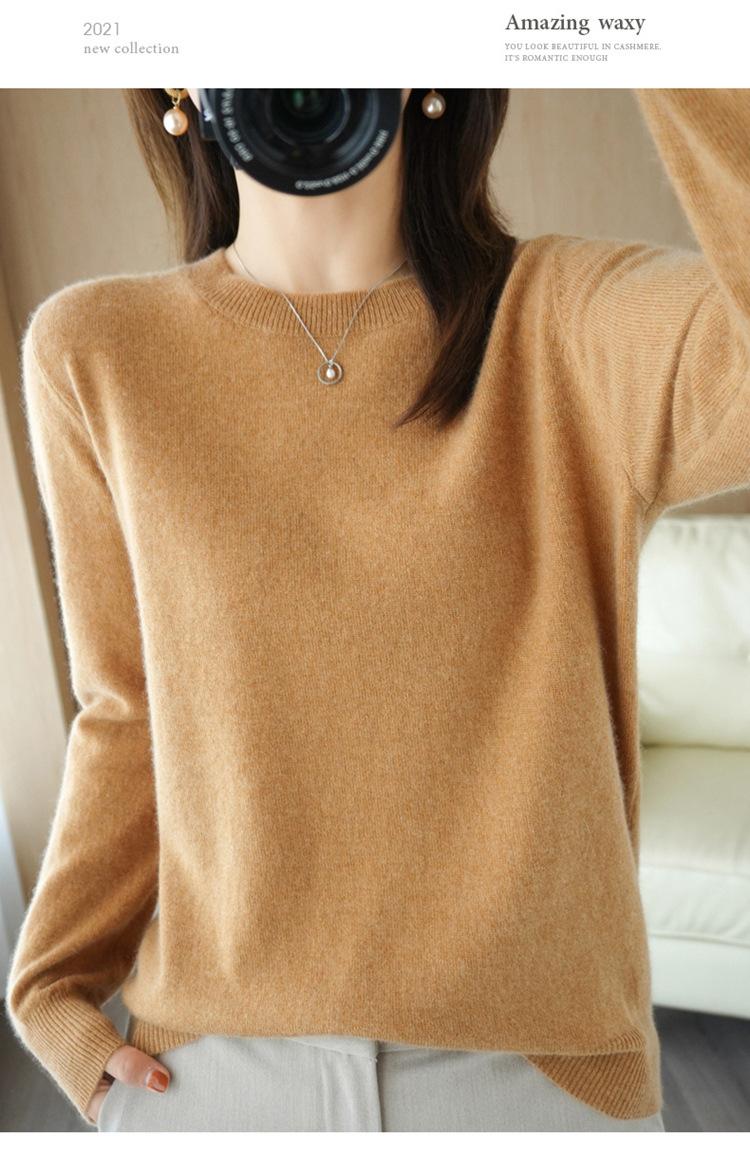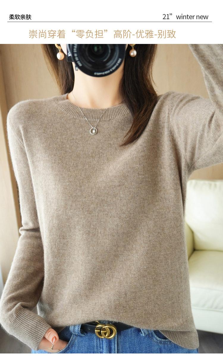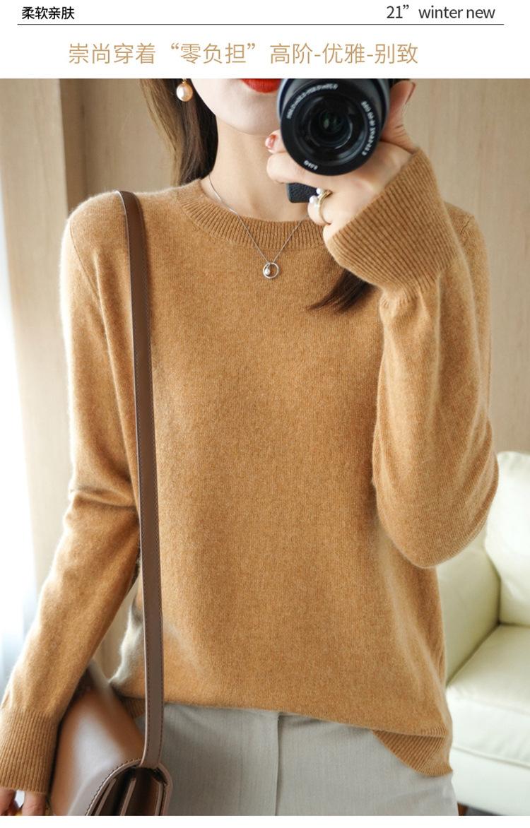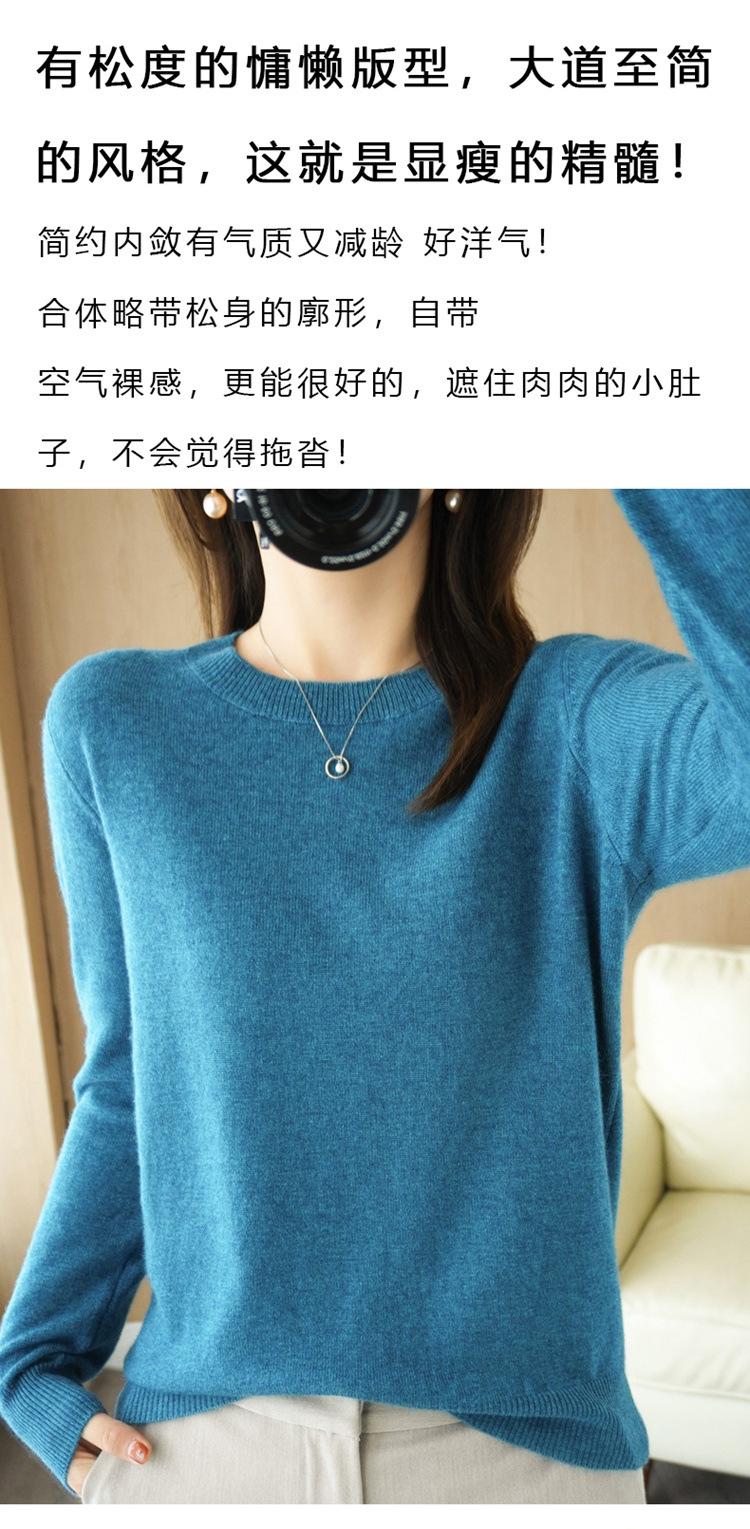 2023 Novo Suéter de Gola Redonda Feminino Outono e Inverno Cor Sólida Pulôver Manga Longa Suéter de Malha Base Solta Top de Camisa