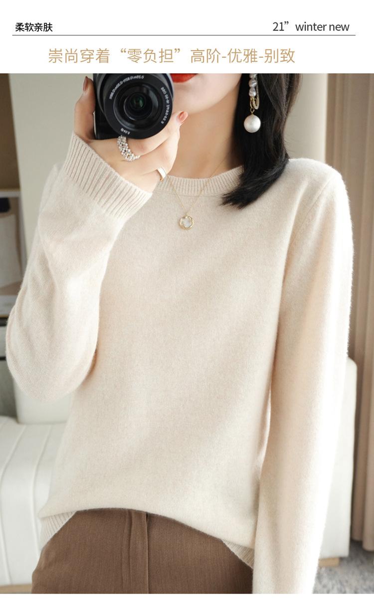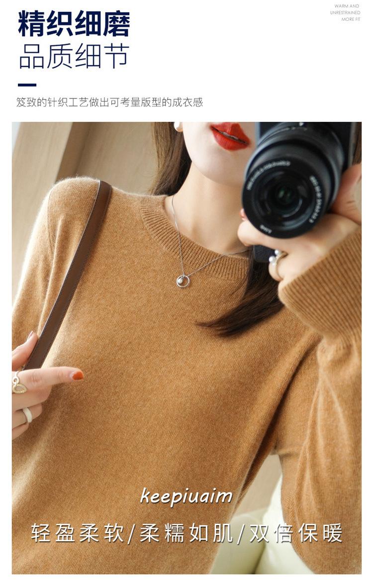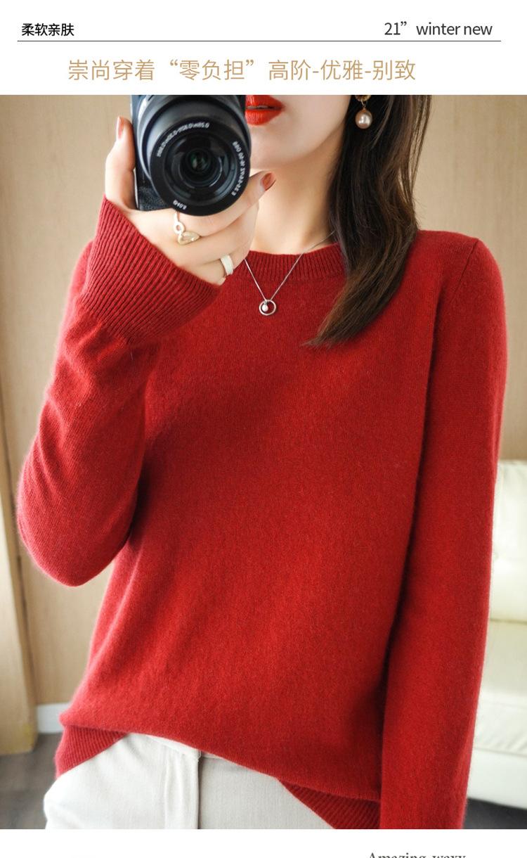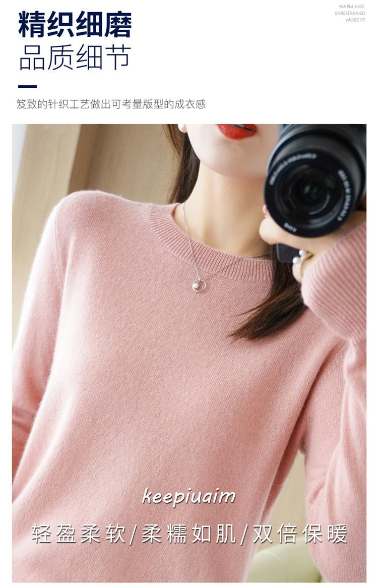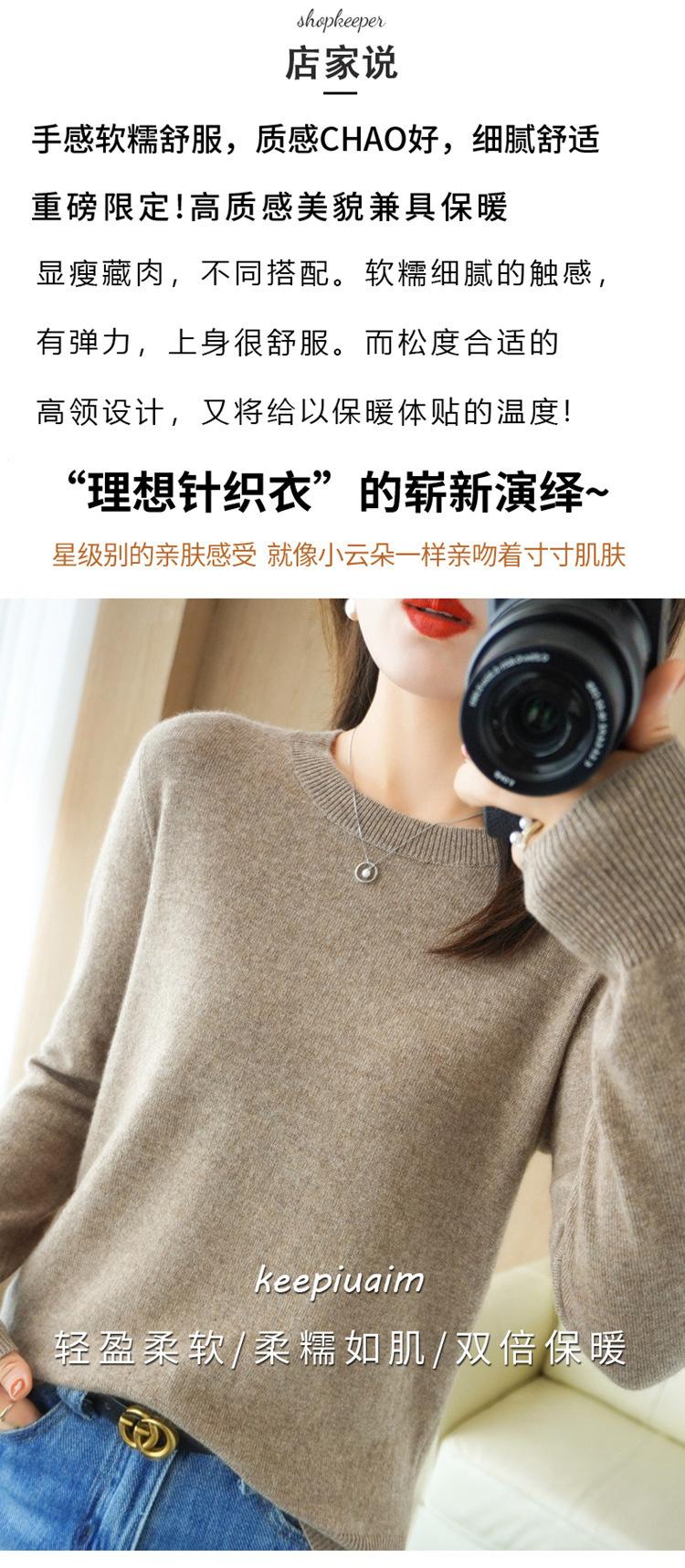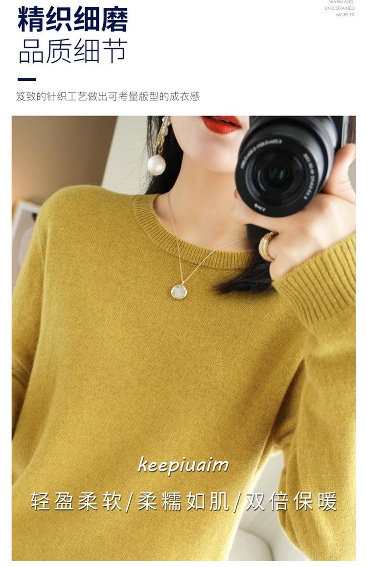 2023 Novo Suéter de Gola Redonda Feminino Outono e Inverno Cor Sólida Pulôver Manga Longa Suéter de Malha Base Solta Top de Camisa