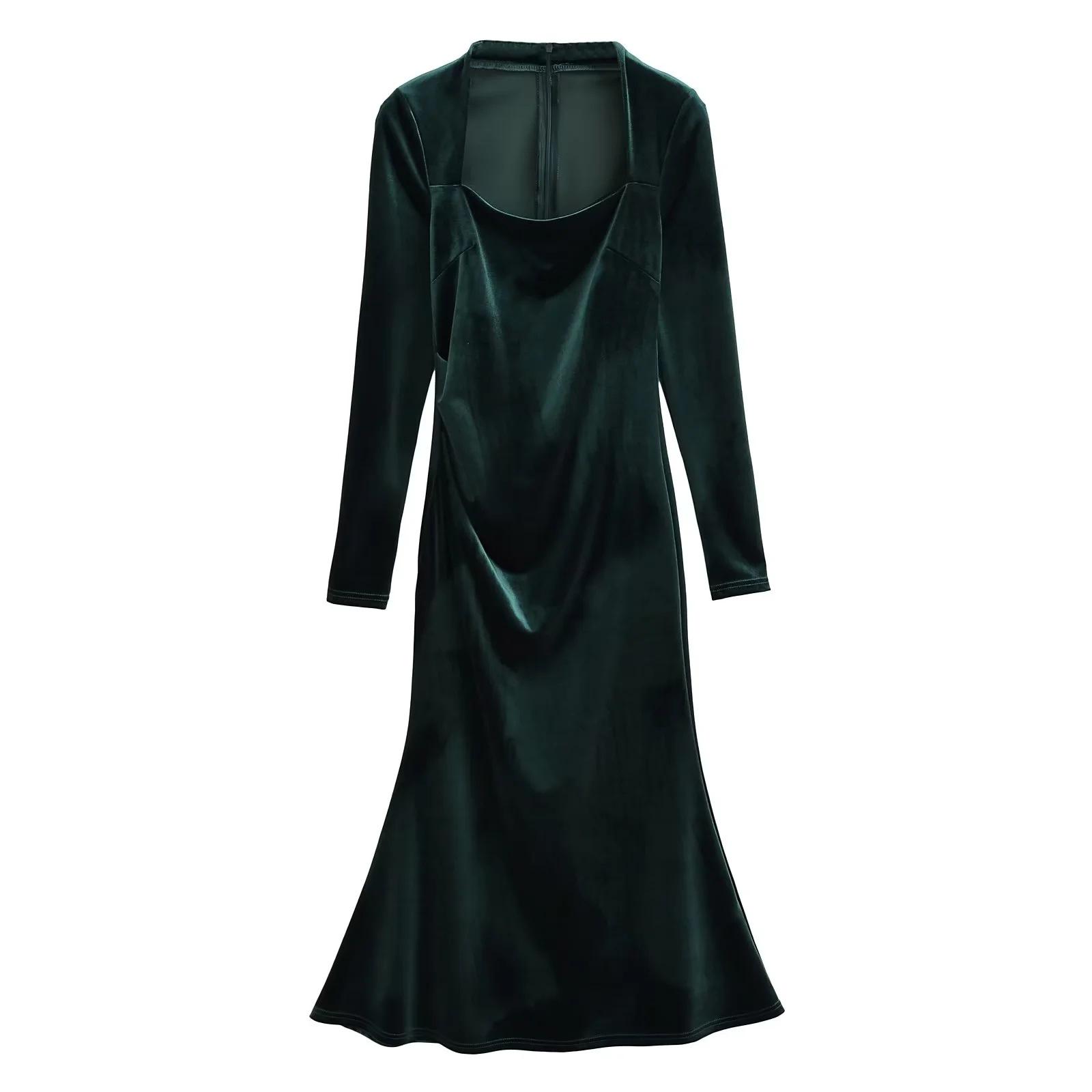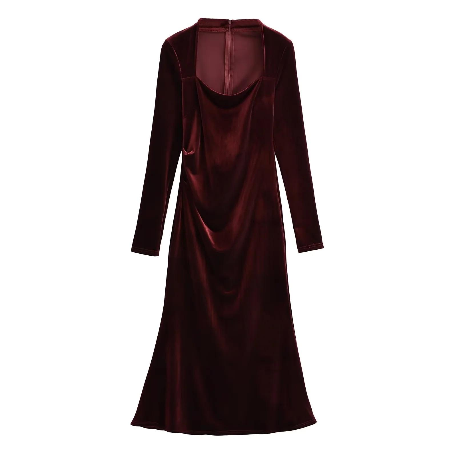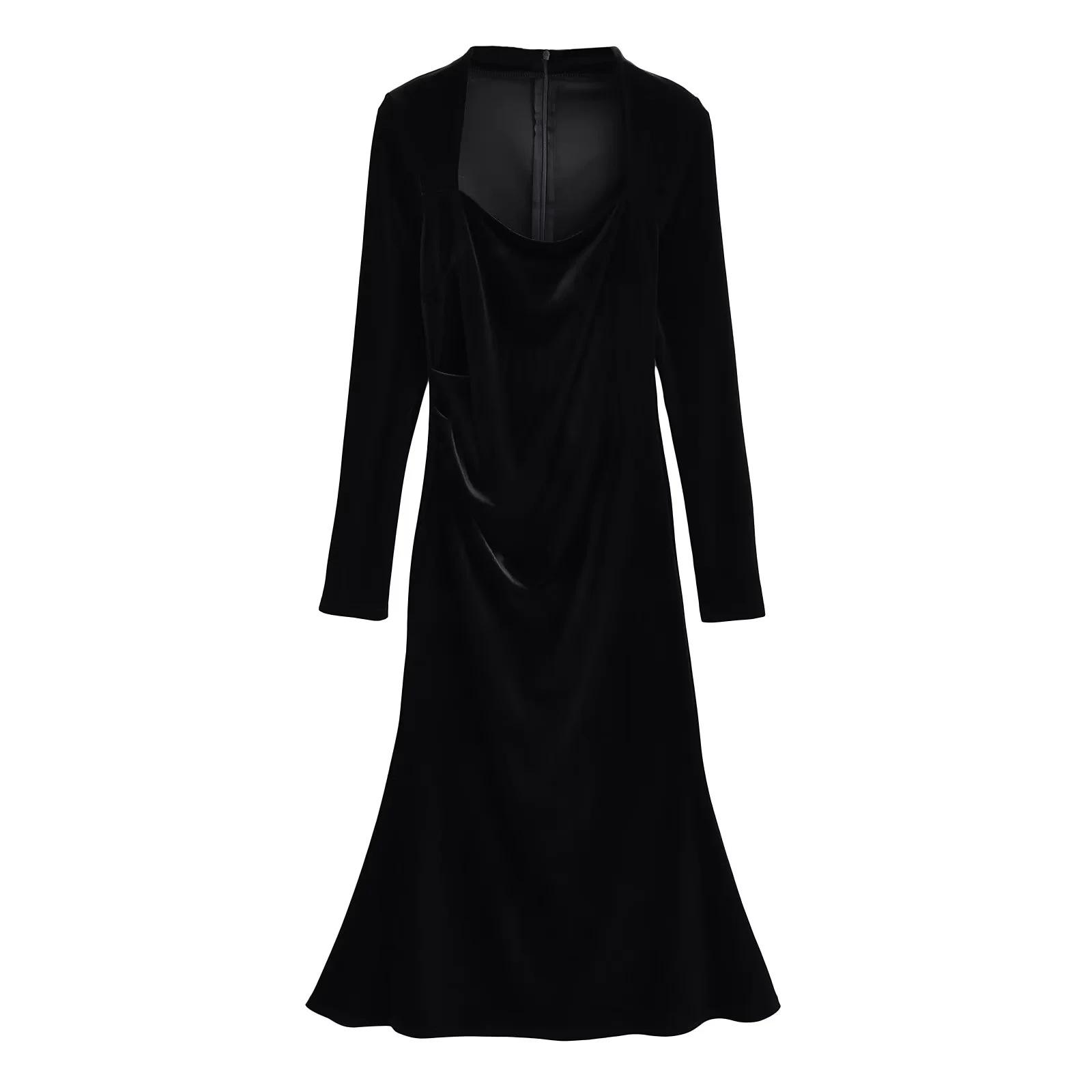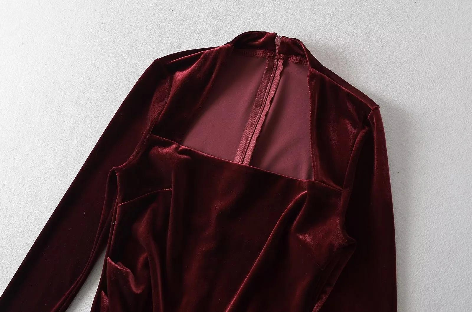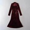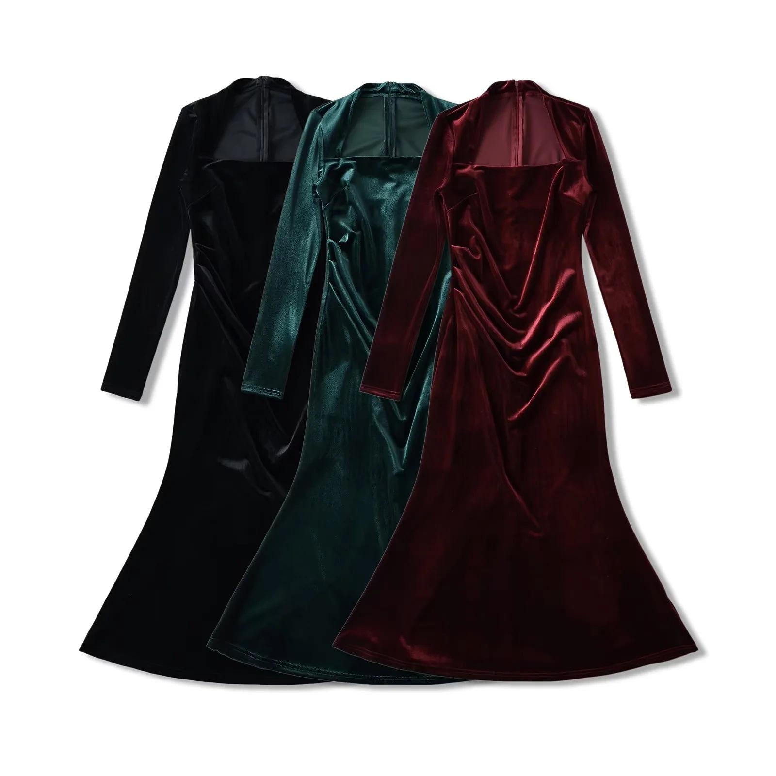 Primavera francesa nova gola quadrada retrô Hepburn estilo vestido de veludo ombro das mulheres manga cintura alta grande vestido de balanço