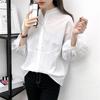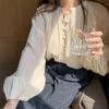 Design de Estilo Suave Transfronteiriço Gola Alta Mangas Lanterna Mangas Bufantes Estilo Coreano Camisa Escovada de Manga Comprida para Mulheres
