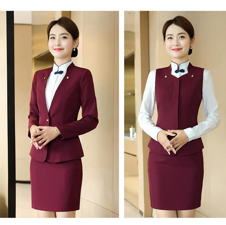 Colete Terno Profissional Feminino Atendente de Hotel Roupas de Trabalho Salão de Beleza Recepção Terno de Trabalho Terno Formal Uniforme de Aeromoça