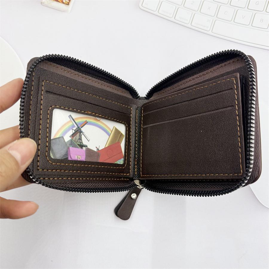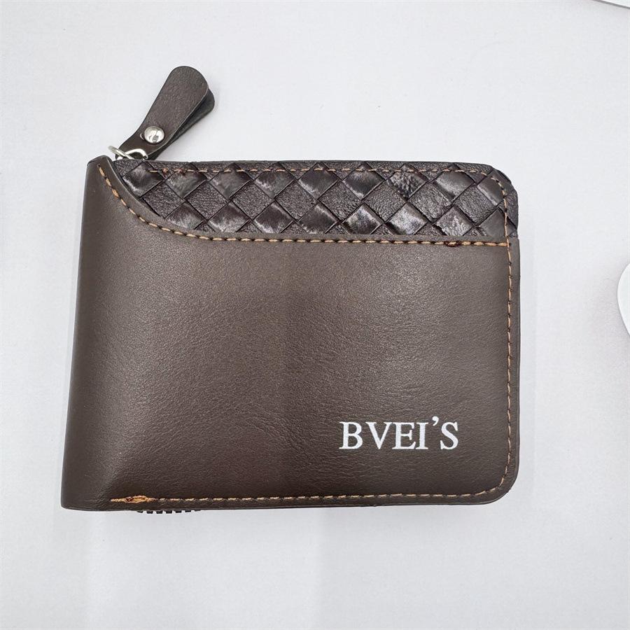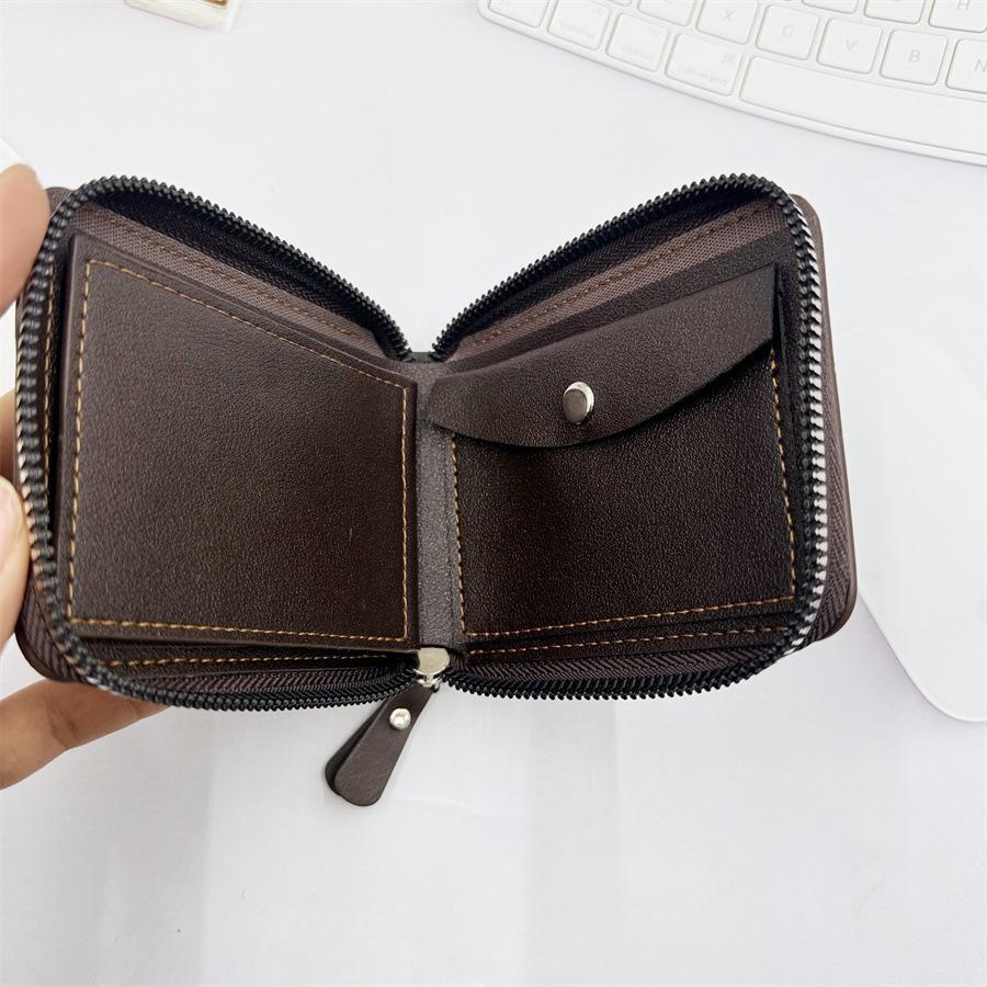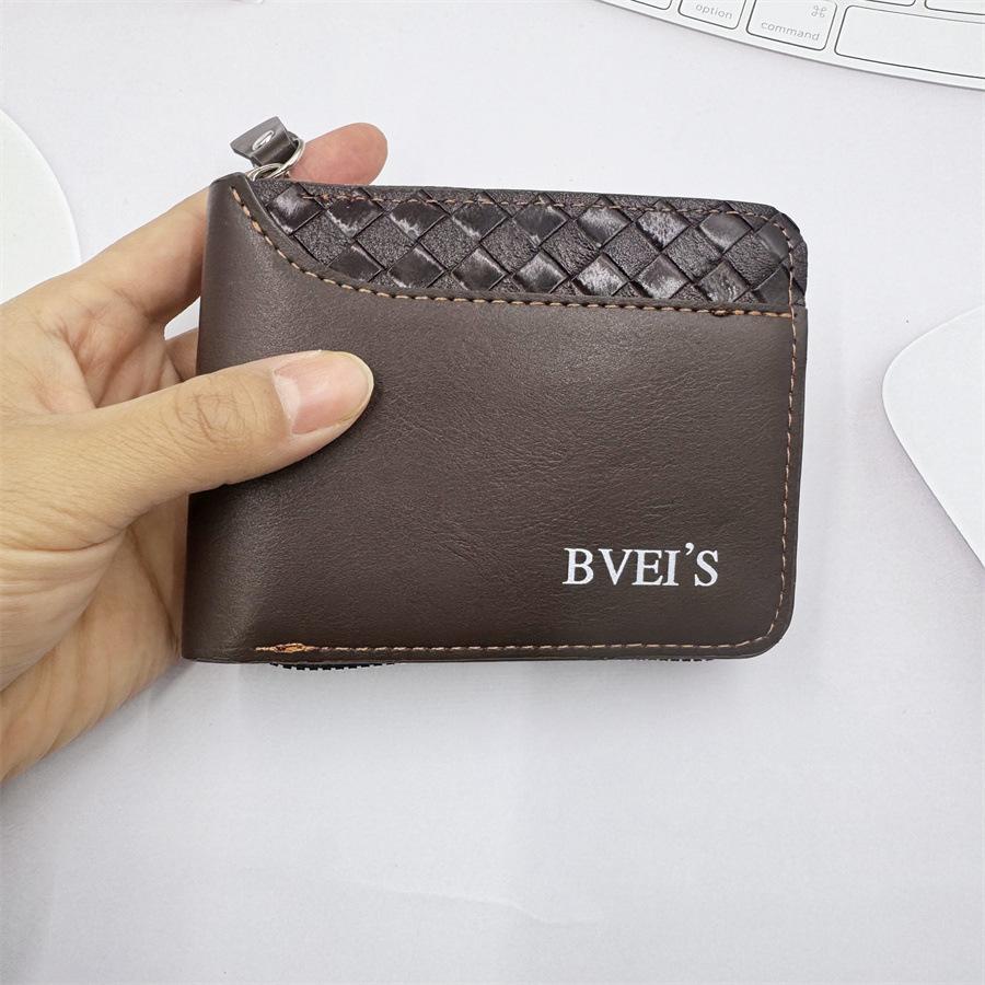 2024 Nova carteira transfronteiriça masculina curta com zíper horizontal Carteira 20% Carteira de moedas dobrável Carteira de costura de padrão tecido