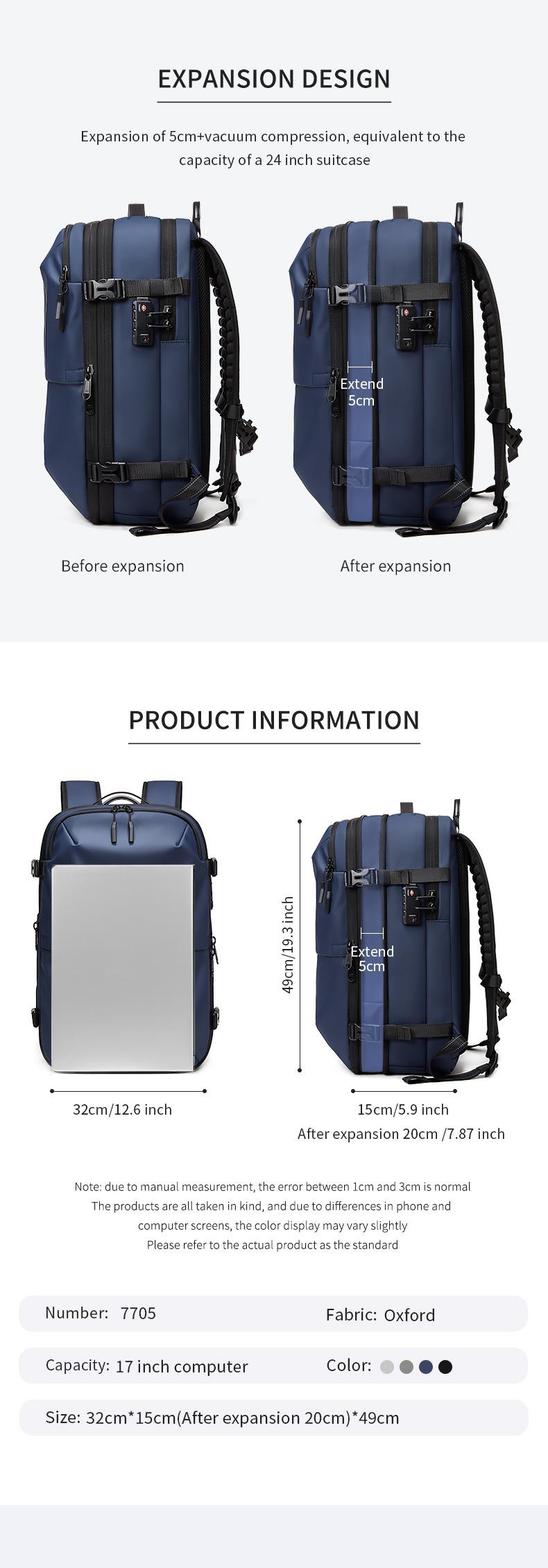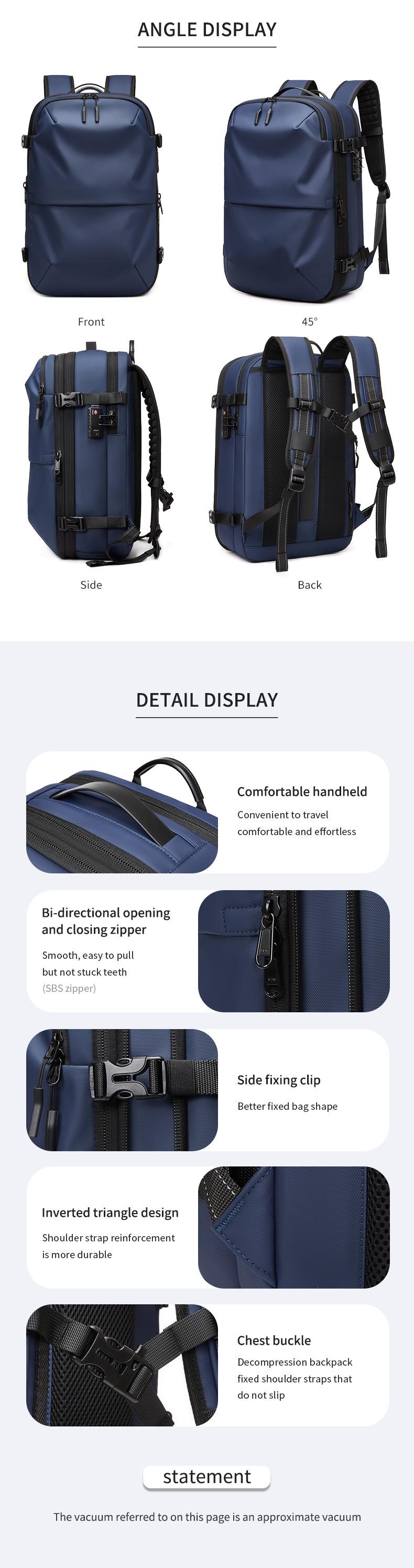 Mochila Masculina Negócios Multifuncional Repelente de Água Computador Bolsa Grande Capacidade Compressão a Vácuo Viagem Lazer Viagem Mochila
