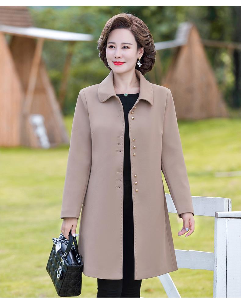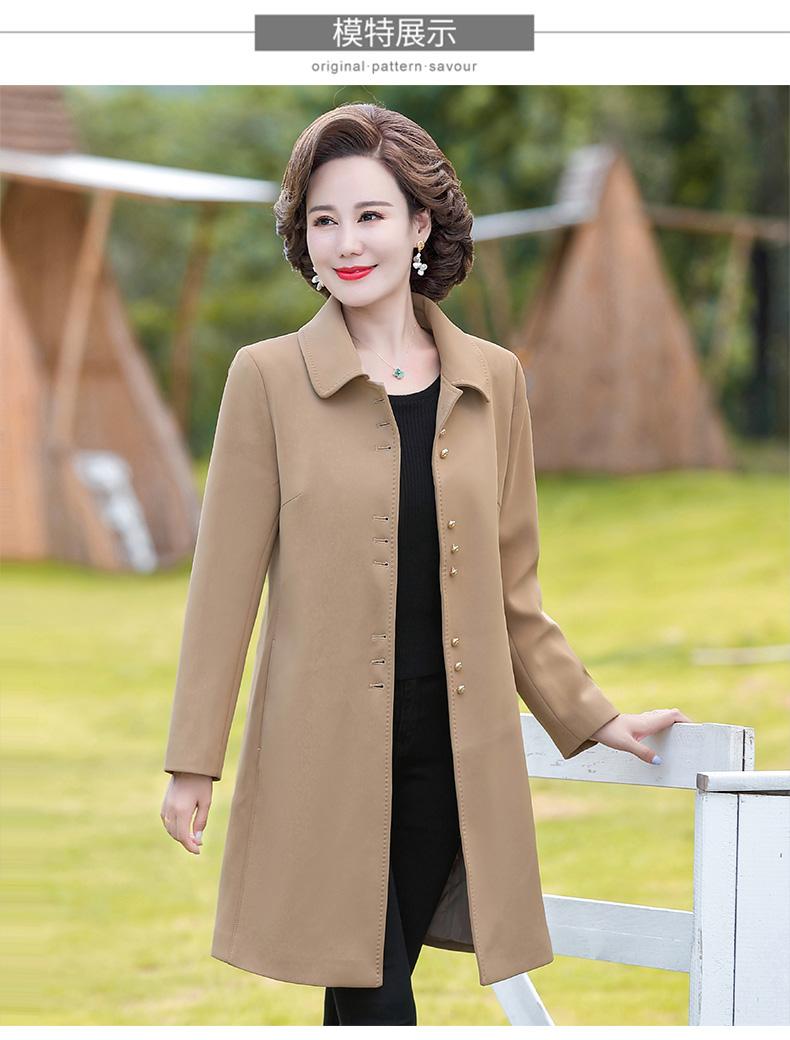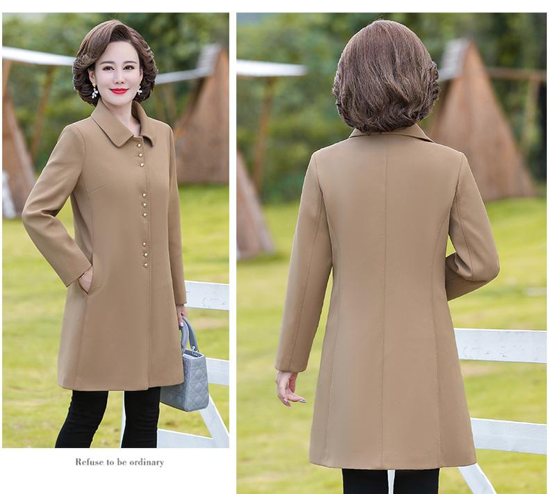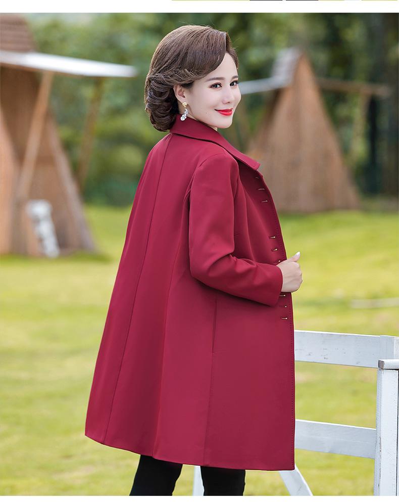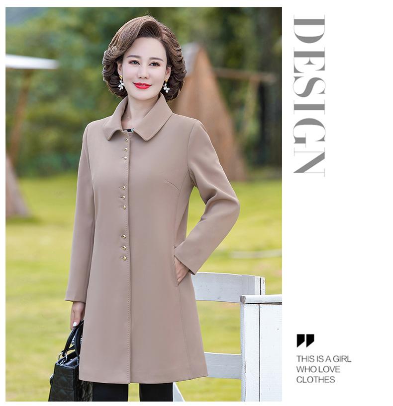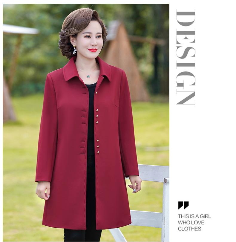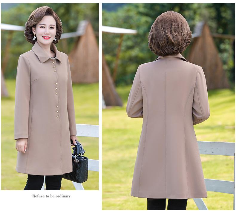 Outwear de Primavera e Outono para Mulheres de Meia-Idade e Idosas, Corta-Vento da Moda Tamanho Grande Comprimento Médio 2025 Novo Outwear de Outono para Mães de Meia-Idade