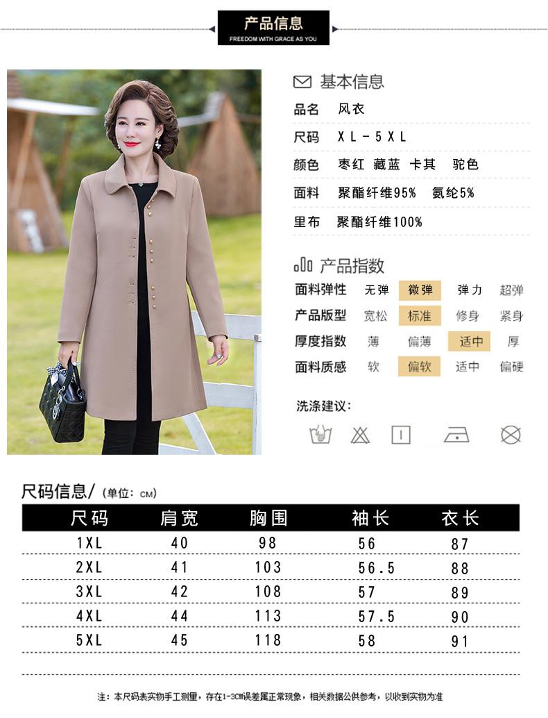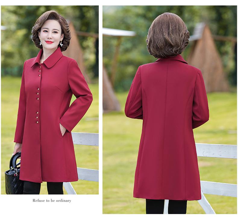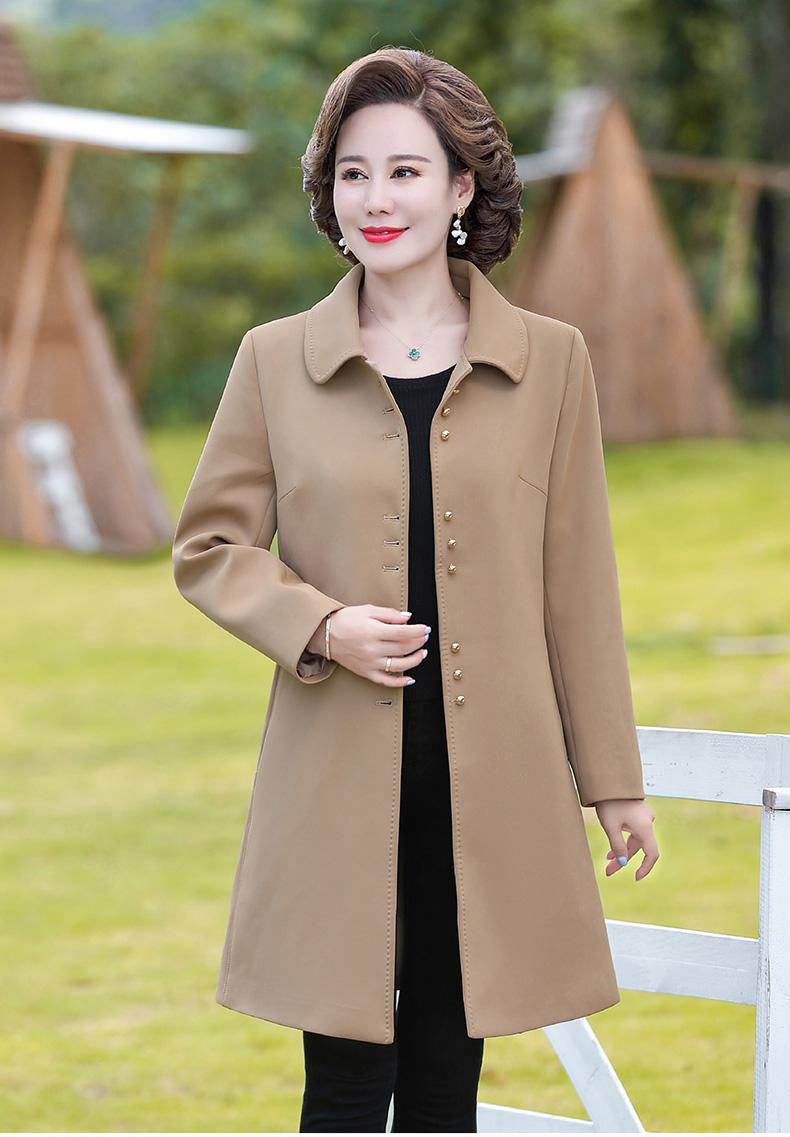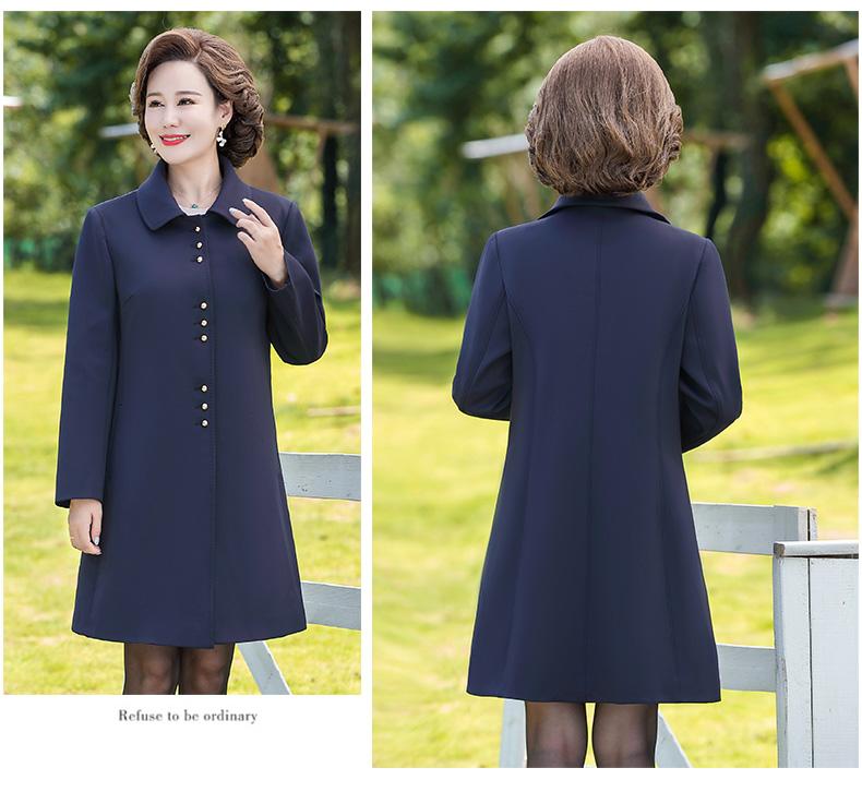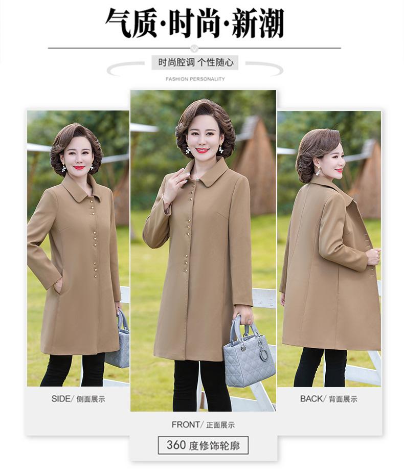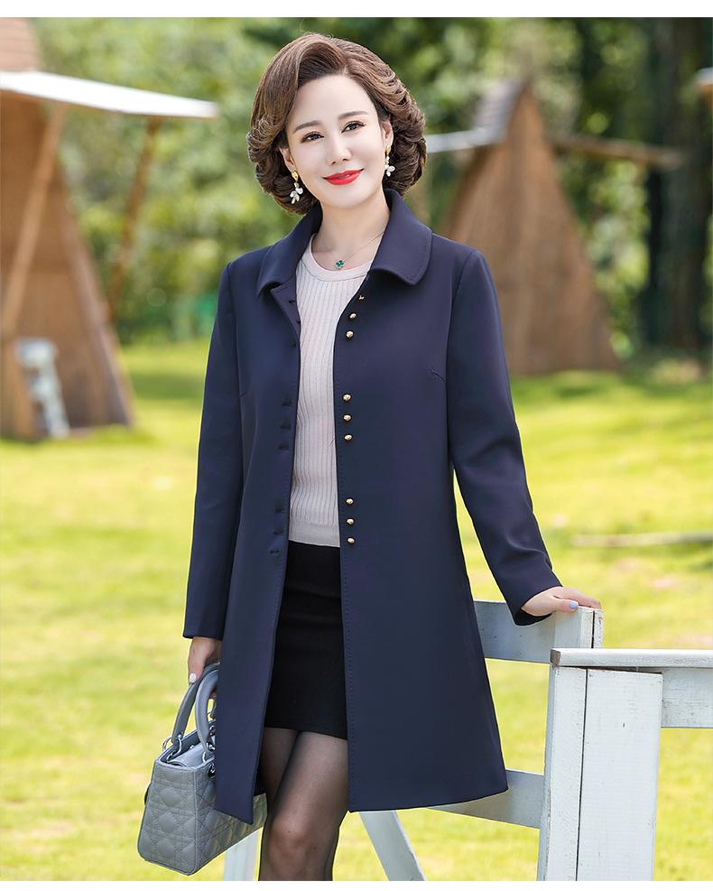 Outwear de Primavera e Outono para Mulheres de Meia-Idade e Idosas, Corta-Vento da Moda Tamanho Grande Comprimento Médio 2025 Novo Outwear de Outono para Mães de Meia-Idade