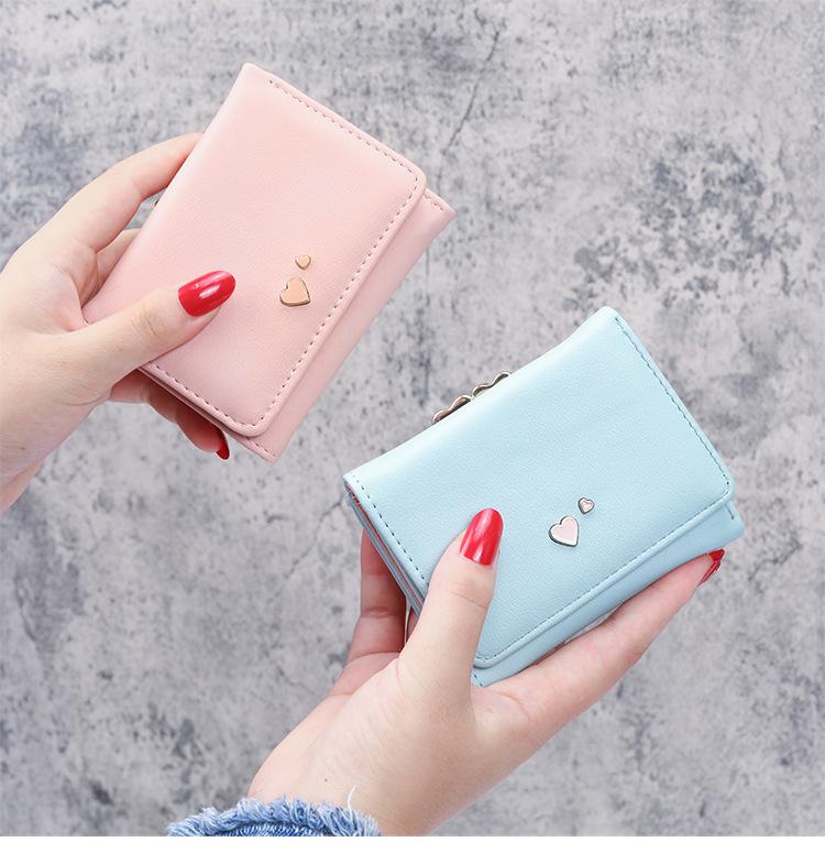 2020 carteira feminina popular curta feminina estilo japonês e coreano simples em forma de coração mini novo estudante carteira pequena carteira