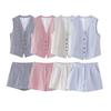 Europa e Estados Unidos comércio exterior transfronteiriço roupas femininas primavera/verão 2024 novo terno de algodão e linho de cor sólida sem mangas da Amazon