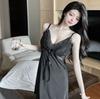 2023 Novo Estilo de Verão Fino Sexy Decote V Camisola Simples para Noite Pijama para Casa Cor Pura Alças Sedas e Cetins Sensação Fresca