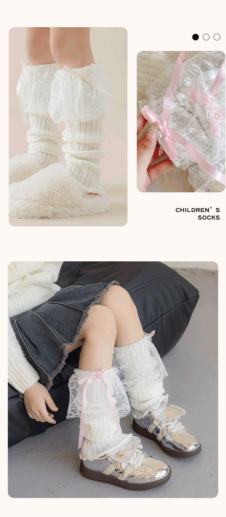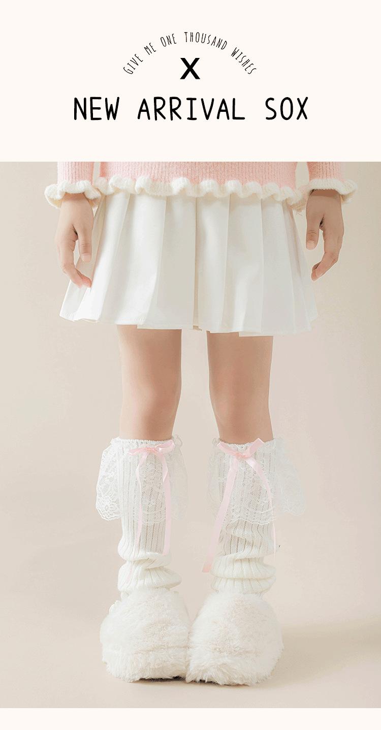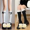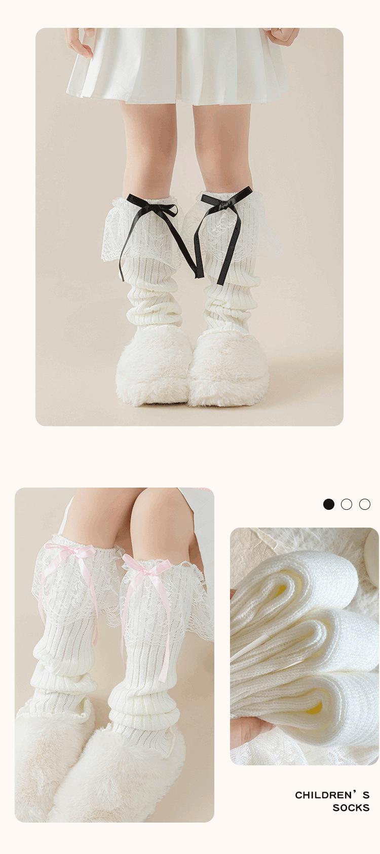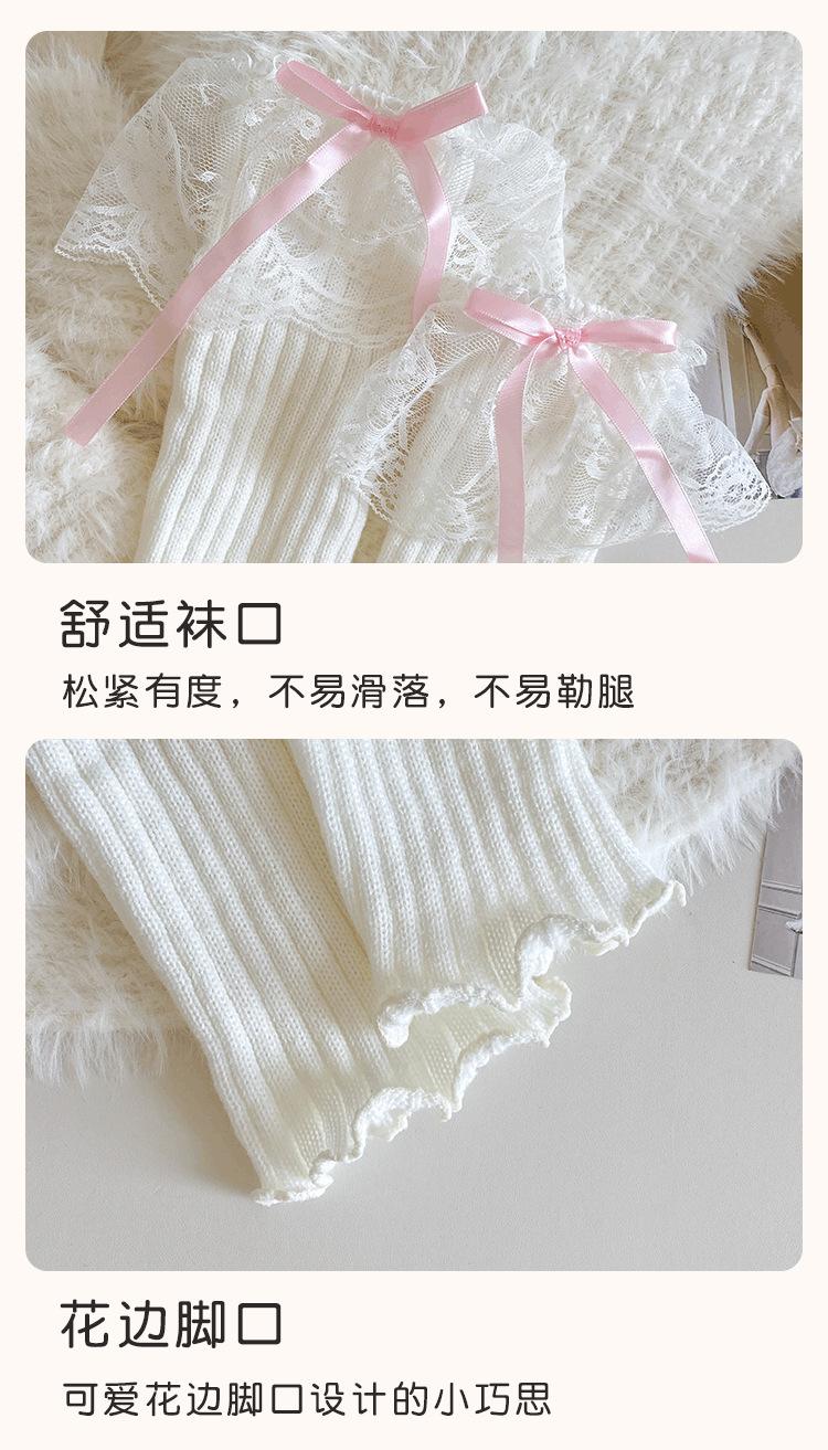 Meias para meninas primavera e outono tubo longo laço arco pilha de renda meias outono e inverno protetor de perna quente Lolita conjunto de panturrilha