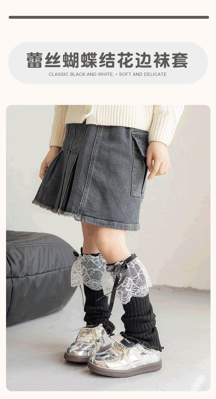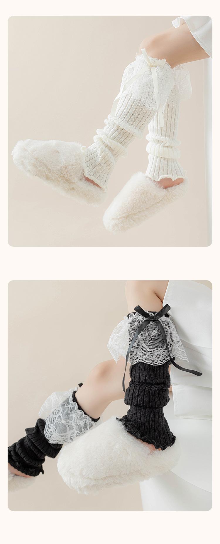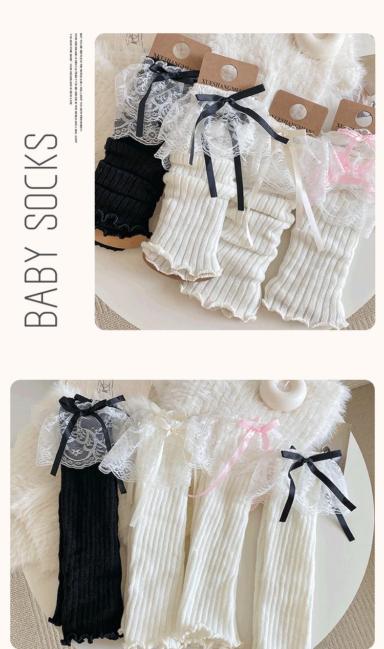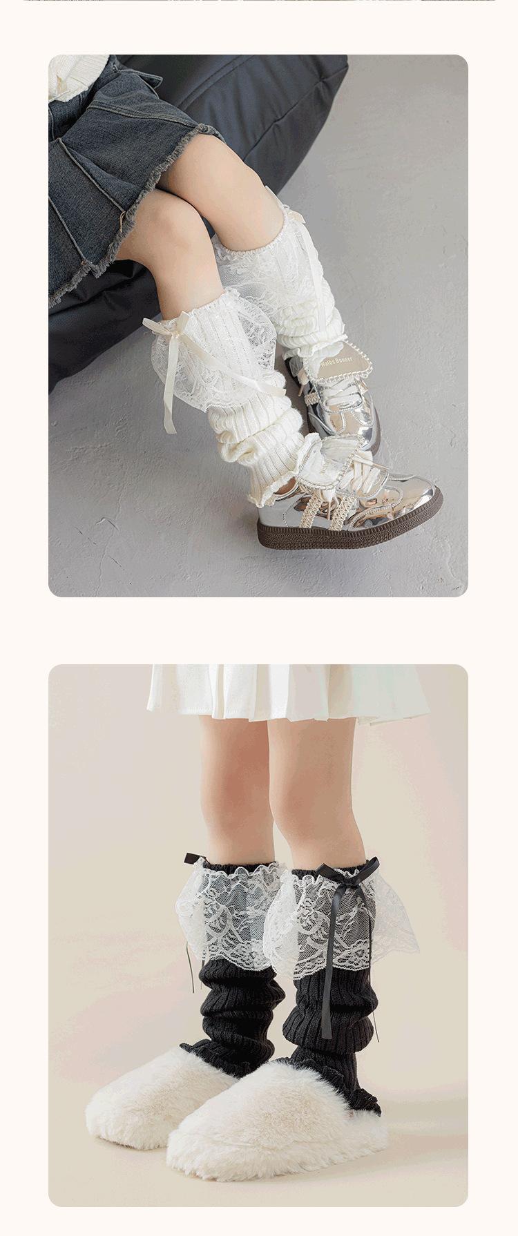 Meias para meninas primavera e outono tubo longo laço arco pilha de renda meias outono e inverno protetor de perna quente Lolita conjunto de panturrilha