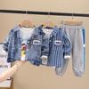 Conjunto jeans infantil para meninos, primavera 2025, novo conjunto infantil para meninos, primavera e outono, elegante e elegante, de três peças
