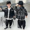 Terno de Outono para Meninos 2025 Novo Conjunto de Duas Peças Camisa Listrada Infantil Bonita Roupas de Outono Fashion para Meninos Estilo Ocidental