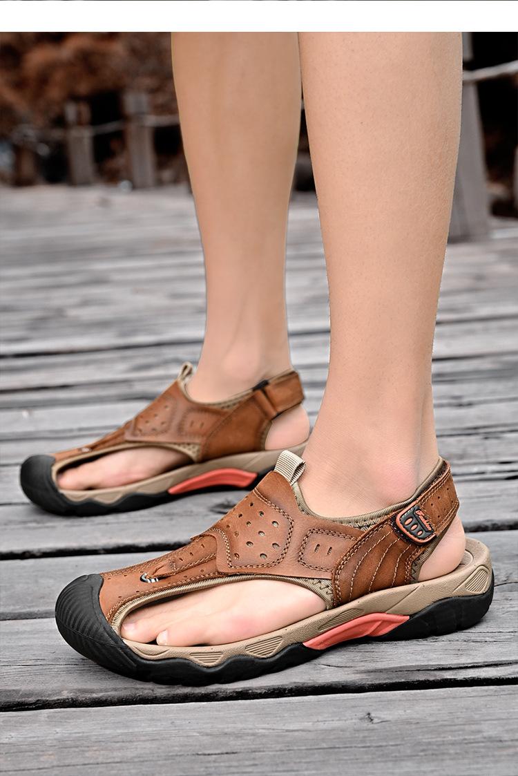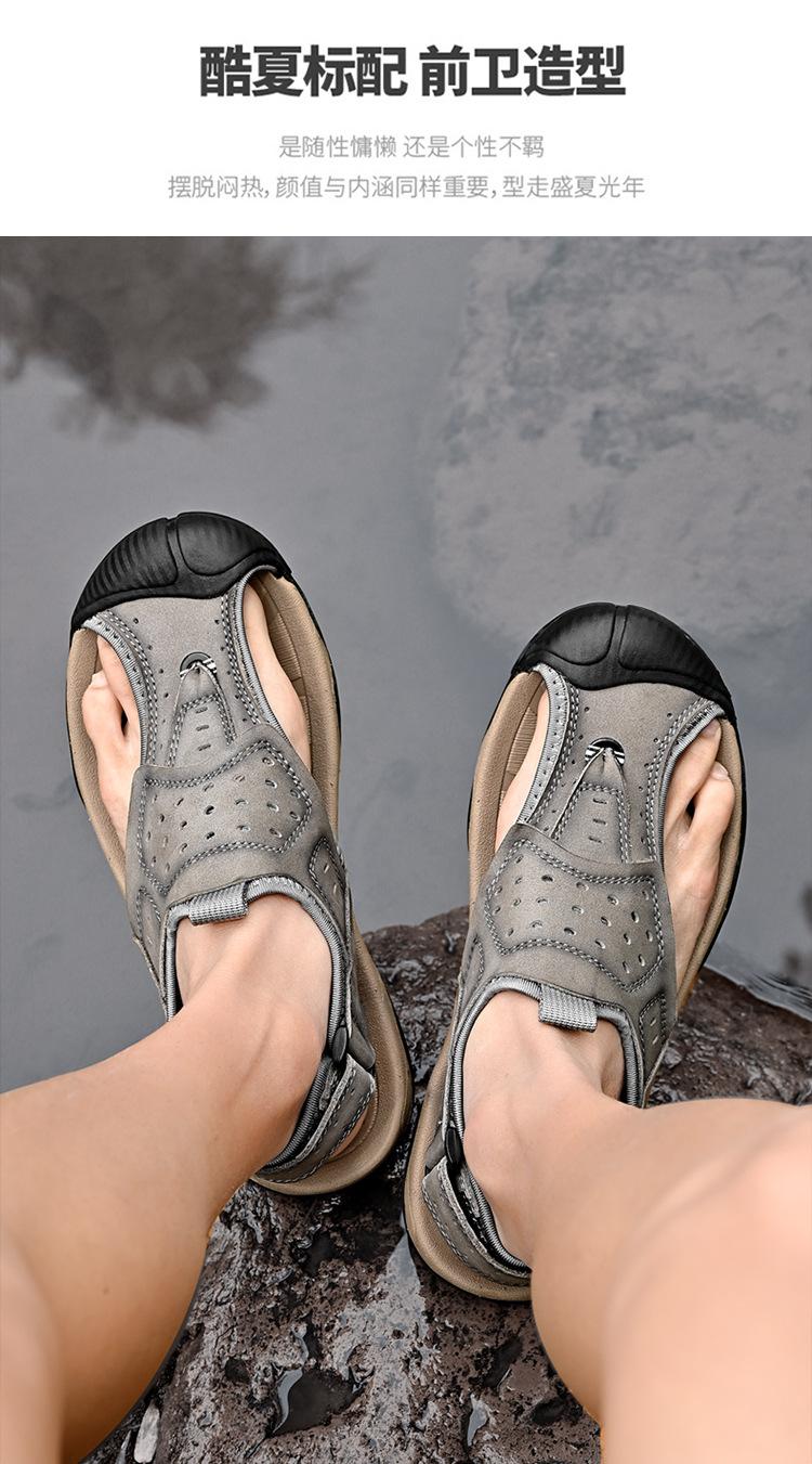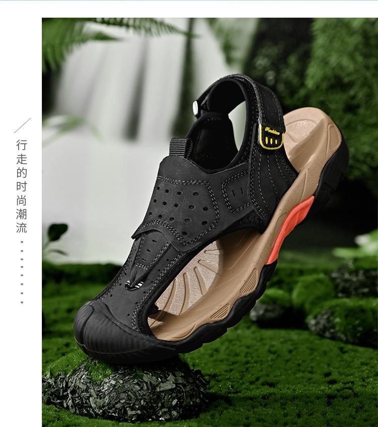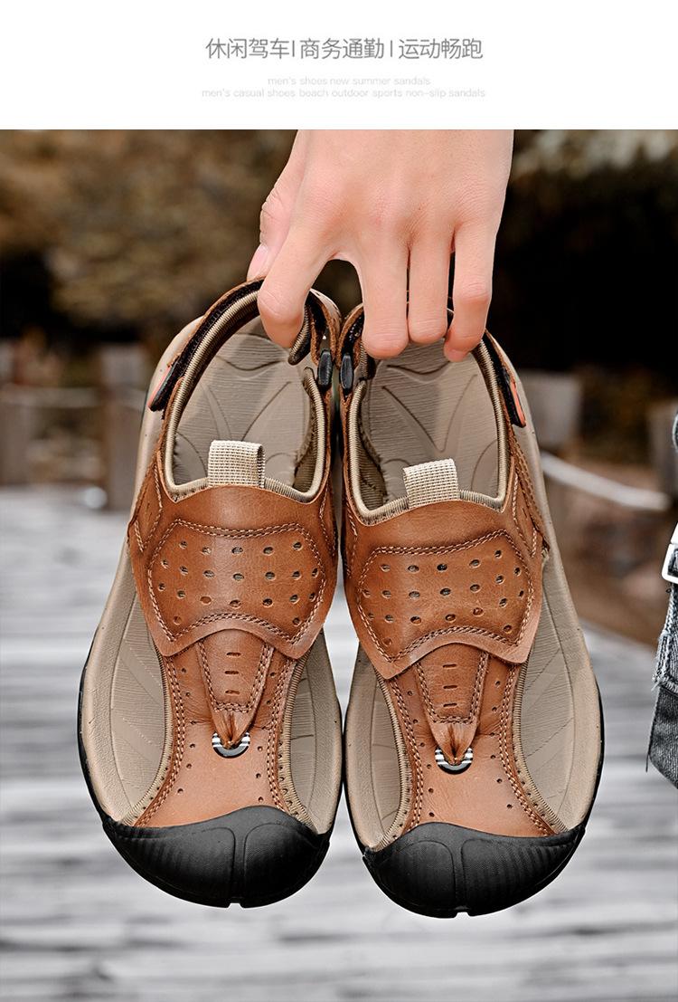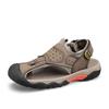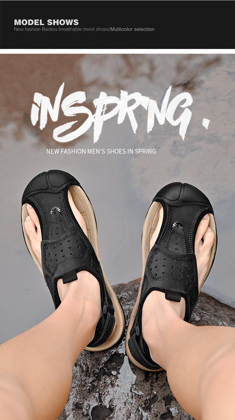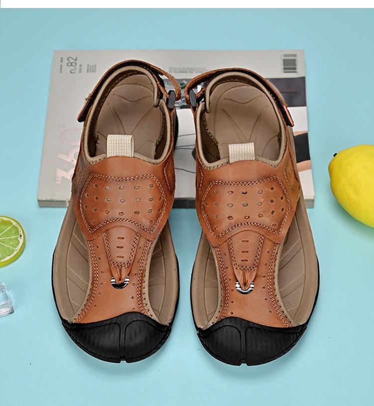 Sandálias de couro genuíno masculinas de verão, sapatos casuais da moda com buracos, respiráveis e de praia