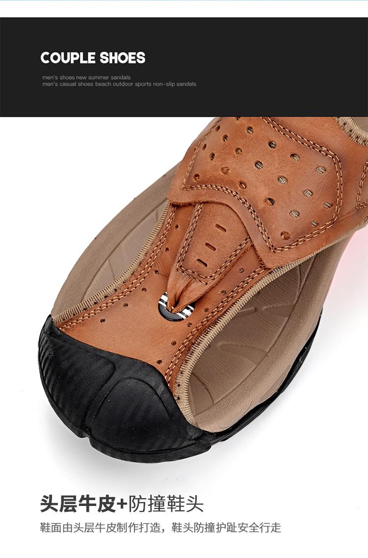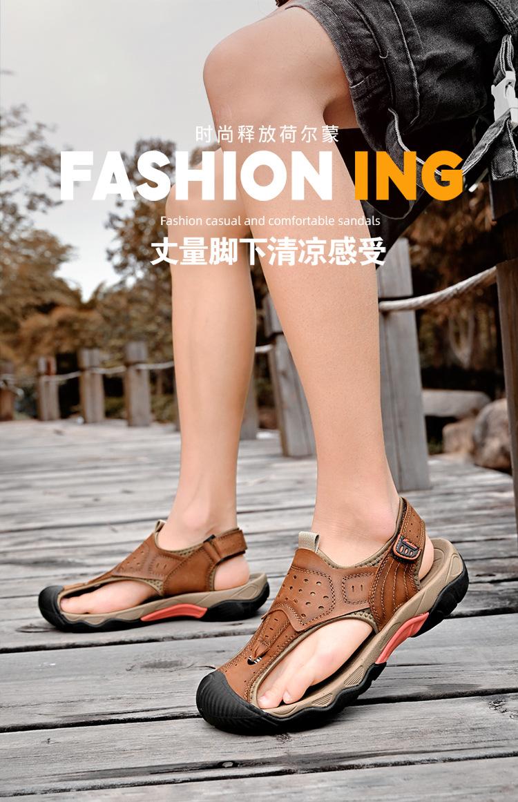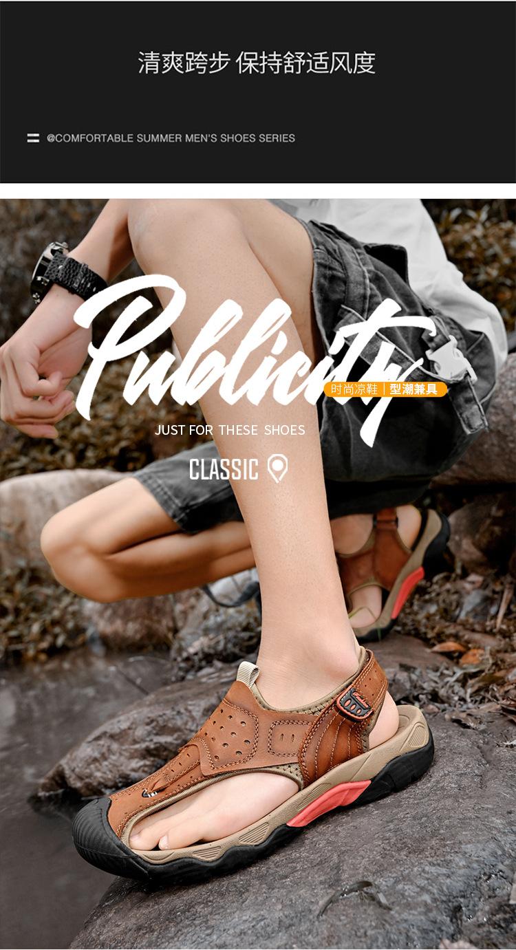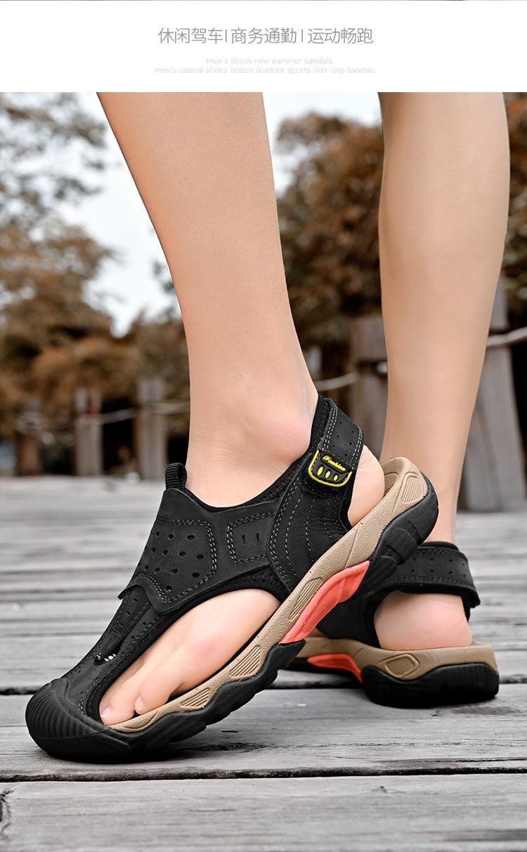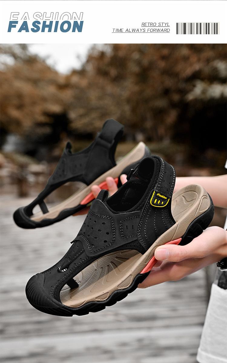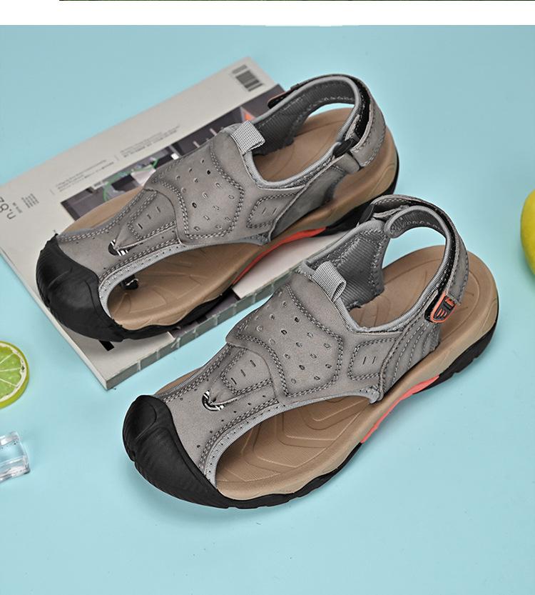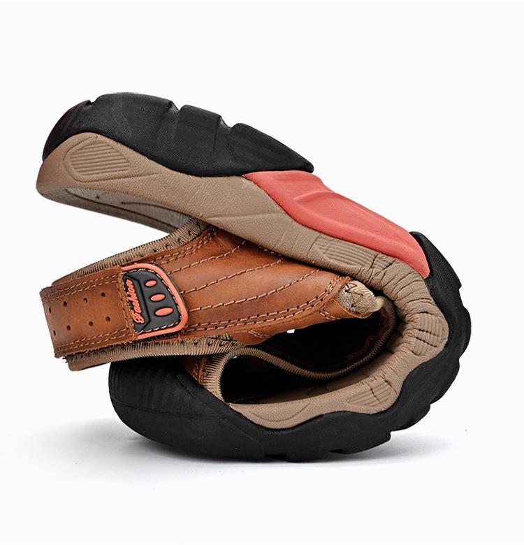 Sandálias de couro genuíno masculinas de verão, sapatos casuais da moda com buracos, respiráveis e de praia