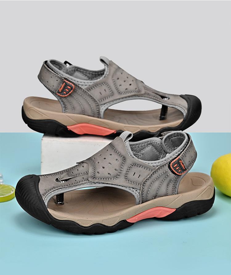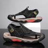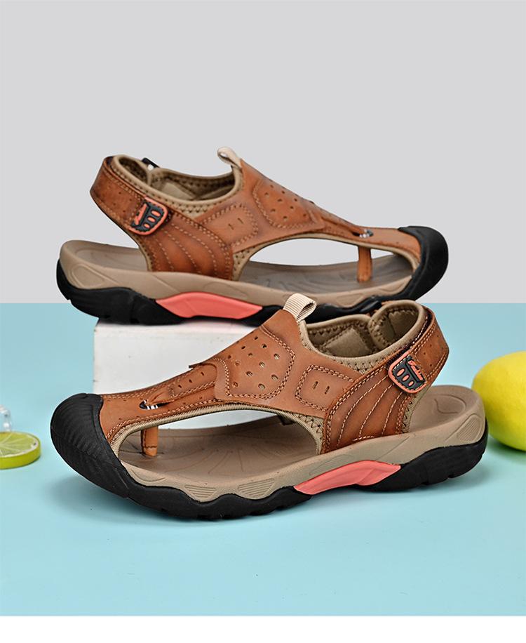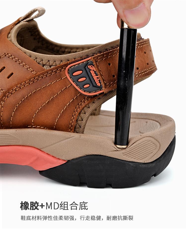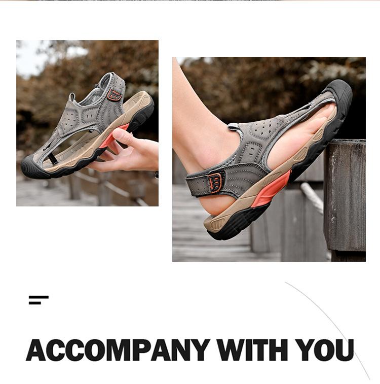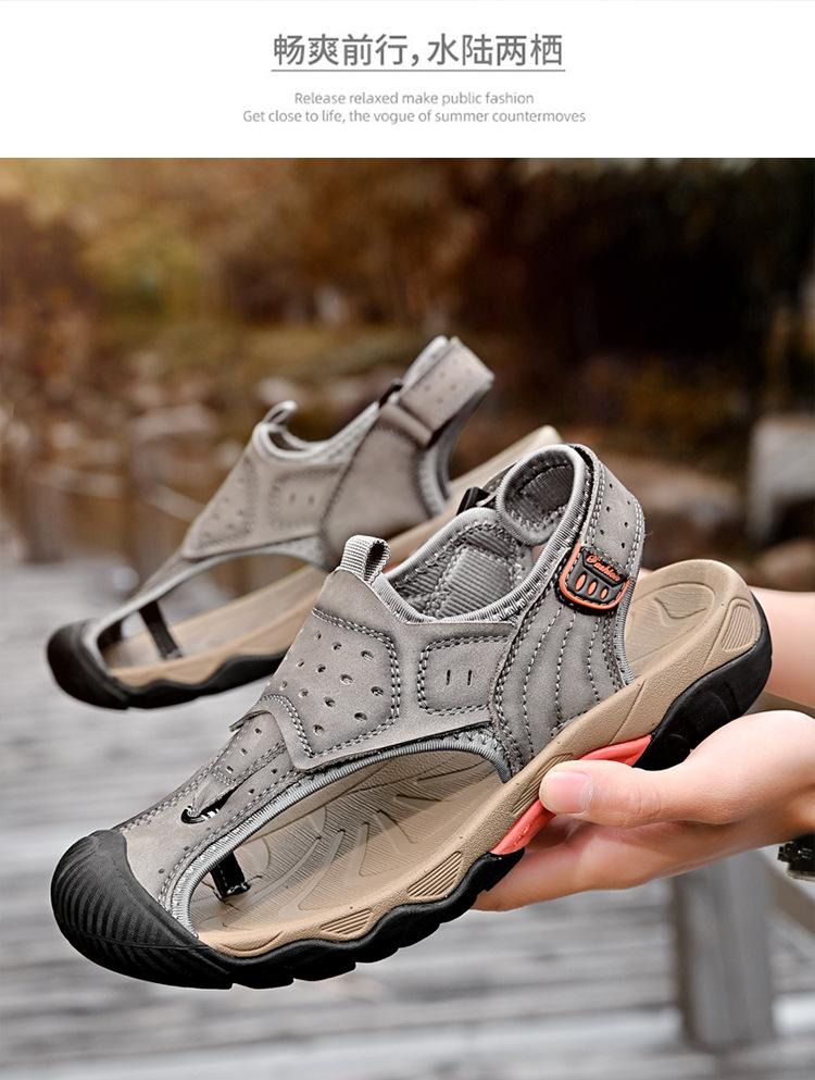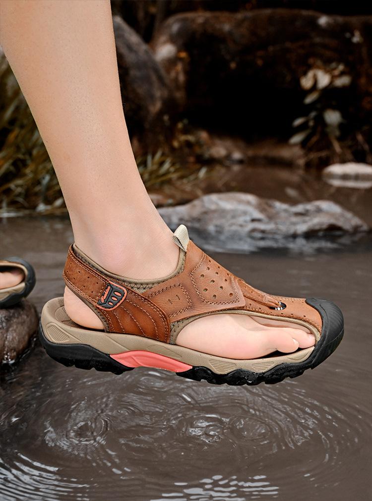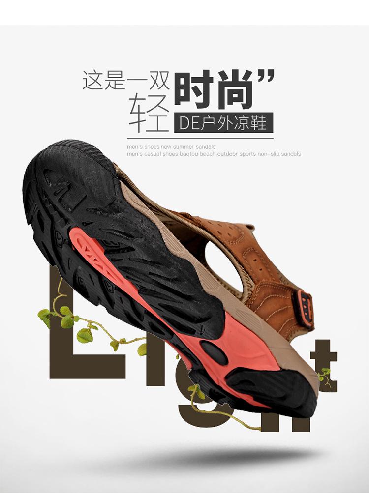 Sandálias de couro genuíno masculinas de verão, sapatos casuais da moda com buracos, respiráveis e de praia