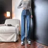 Calças Retas Largas Soltas de Cintura Alta Nova Temporada Primavera/Verão 2025 Jeans Feminino com Bolso Modelador Macio Respirável