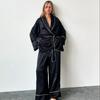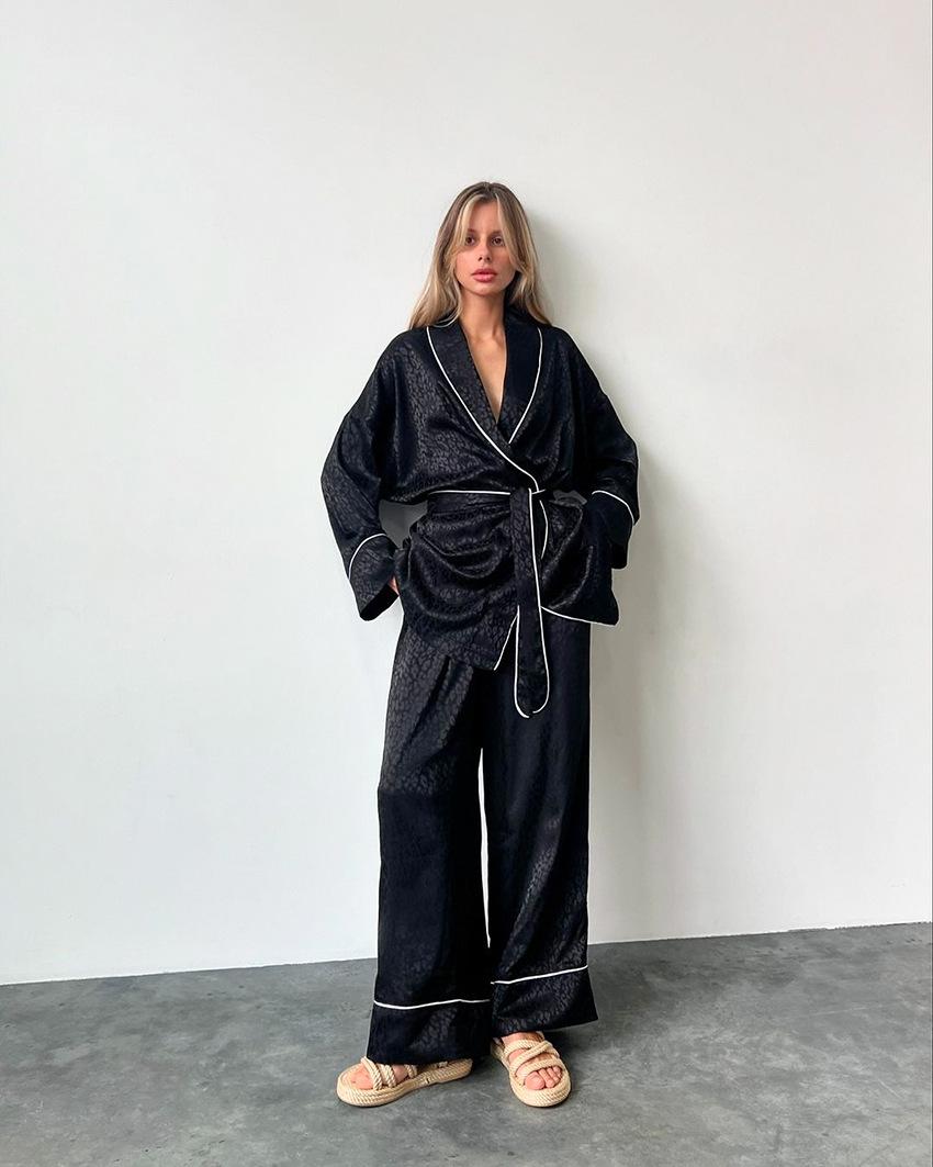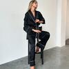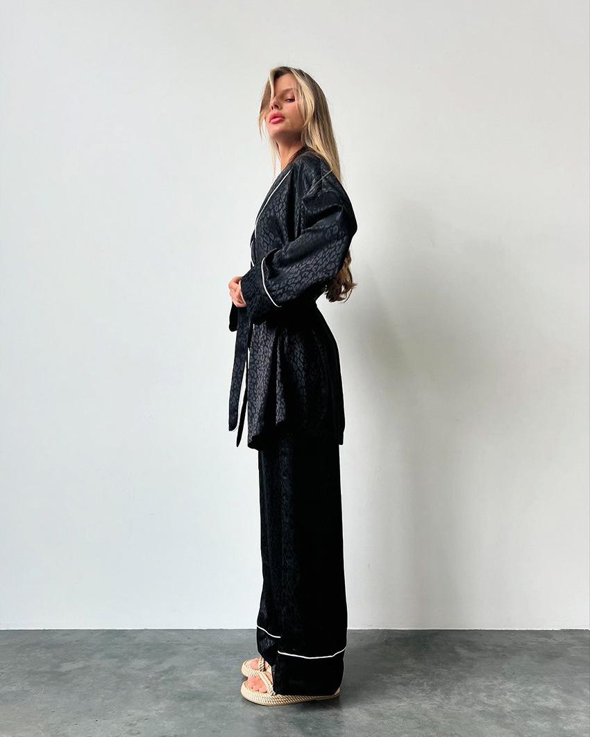 Europeu e Americano Outono Novo Leopardo Jacquard Solto Confortável Moda Manga Comprida Calças Pijamas Femininos Roupas Domésticas Transfronteiriças