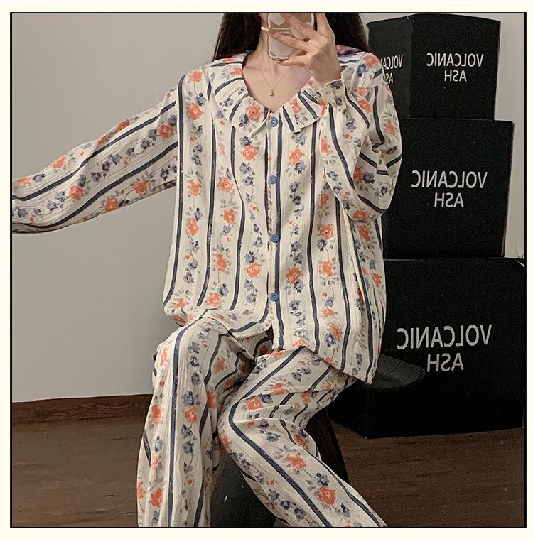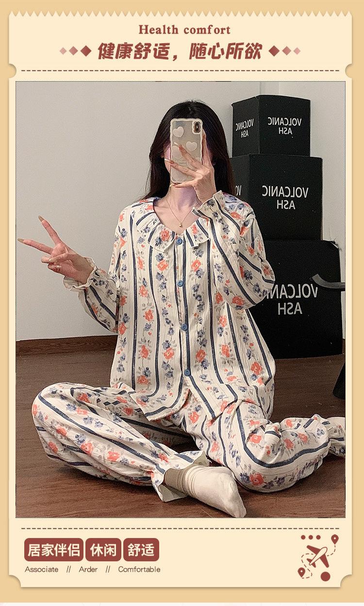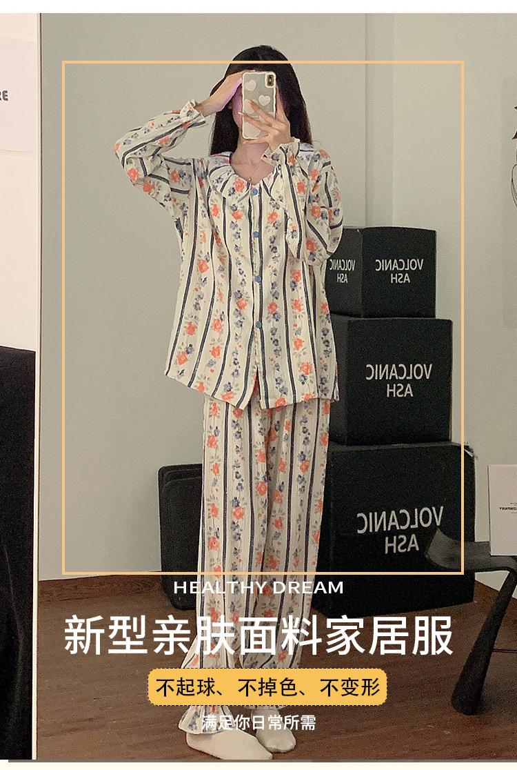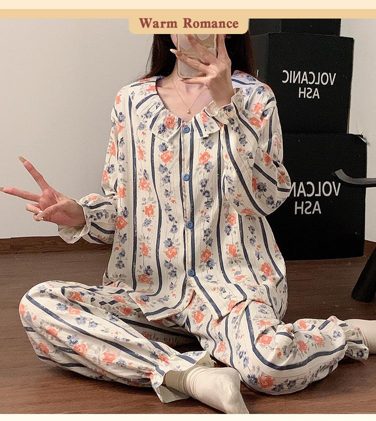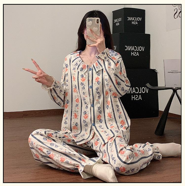 Outono New Ins Pijamas Nuvem Algodão Cardigan Doce Manga Longa Calças Femininas Roupas Domésticas terno Mulheres