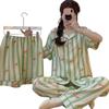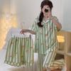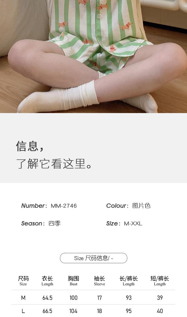 Compre Novo conjunto de três peças de verão listrado contrastante com estampa de salsicha para menina, algodão nuvem, manga curta, roupa de casa por atacado no atacado no Joom.pro