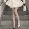 Outono e Inverno nova água Jade ponto costura falso bezerro cinta arco seda preta seda branca pura quente menina estilo meias