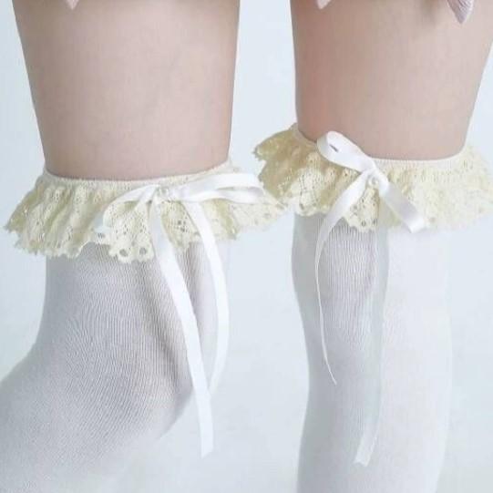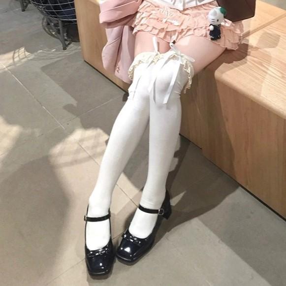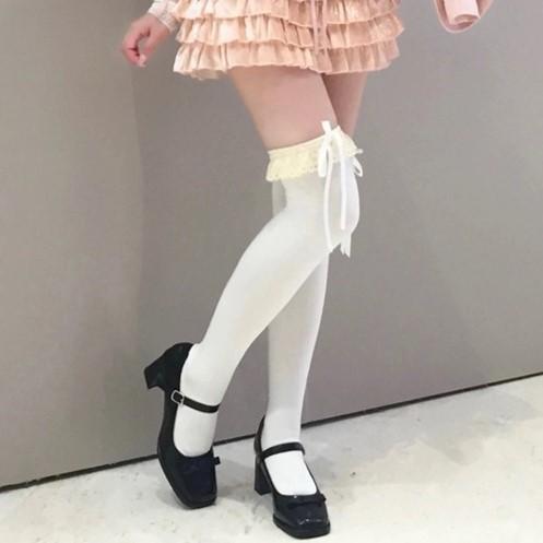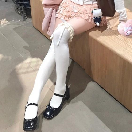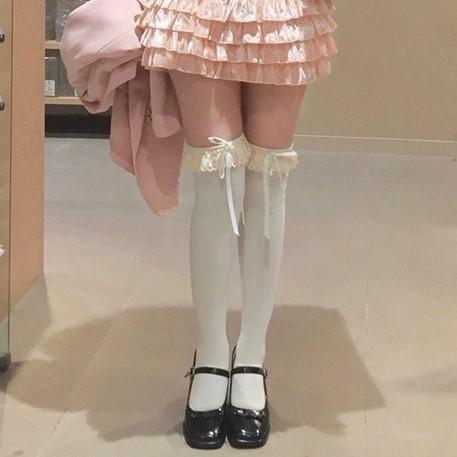 Outono arco laço fita over-the-joelho meias pilha lolita meias coxa meias longas meias de algodão estilo balé