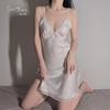 Pijama feminino de seda gelo da marca Guiruo, camisola sexy com decote em V profundo e costura de renda, tentação, traje de dormir para casa 9513
